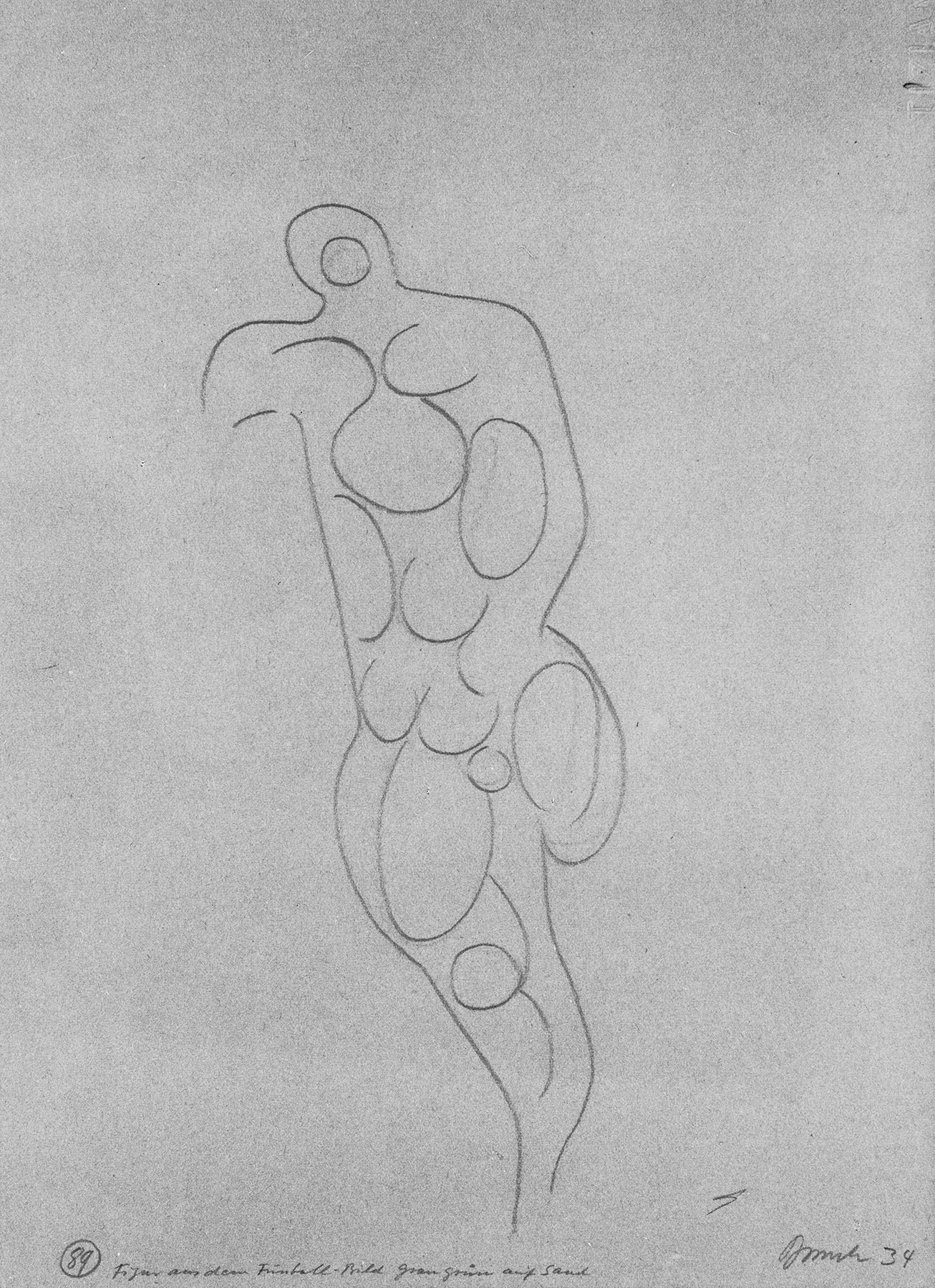 Eine Nachzeichnung des von B. „2.34“ datierten Gemäldes G 347, in der die durch Linienkompartimente aufgelöste Figurenauffassung verdeutlicht werden soll.