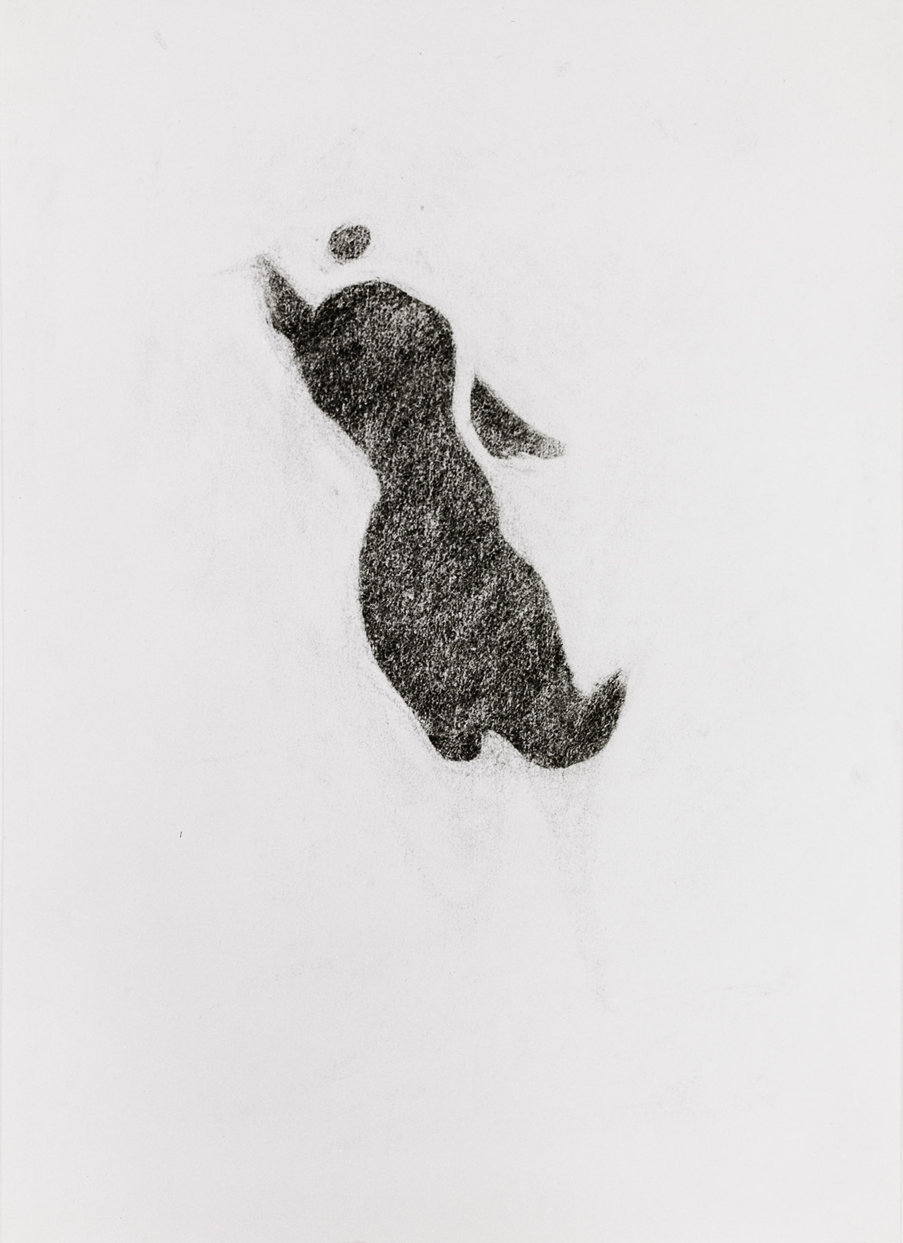 Kohle, gewischt, radiert, fixiert, auf chamoisfarbigem, dünnem Zeichenkarton, am Rand u. im scharfen Knick gerissen