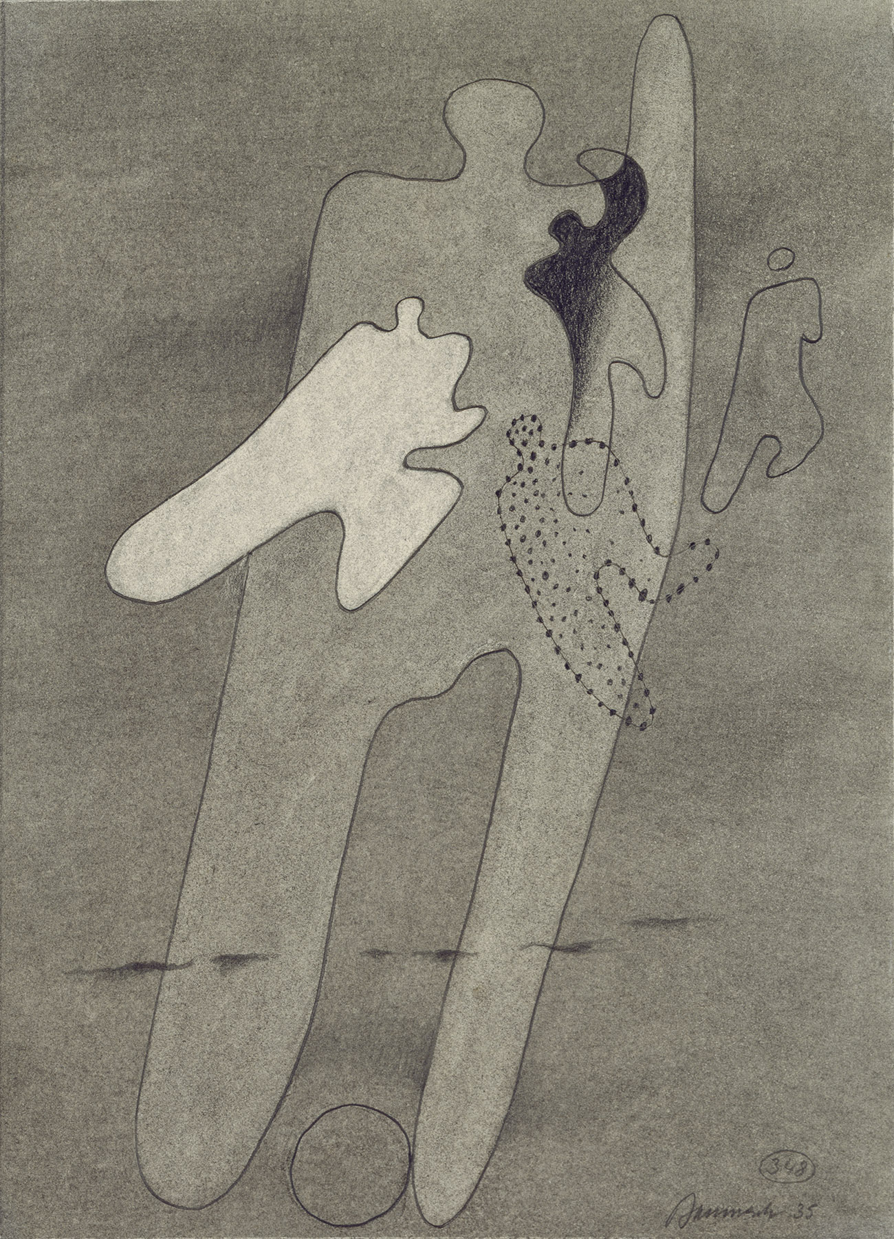 Vgl. das Gemälde G 353 von 1935. 554 und 555: Lediglich die Schattenumrisse der Spieler werden in Hell-Dunkel-Valeurs übereinandergelegt. Bewegung und Lebendigkeit des Ballspiels werden auf diese Weise vermittelt. Die Figuren verdeutlichen verschiedene Bewegungsabläufe des gleichen Spiels, wobei Größe und Kleinheit ihre unterschiedliche Entfernung angeben.