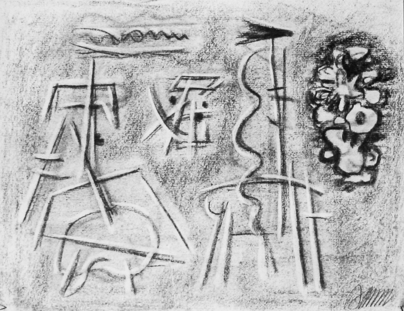 Kohle, gewischt, radiert, Pastell, fixiert, auf Ingres-Bütten