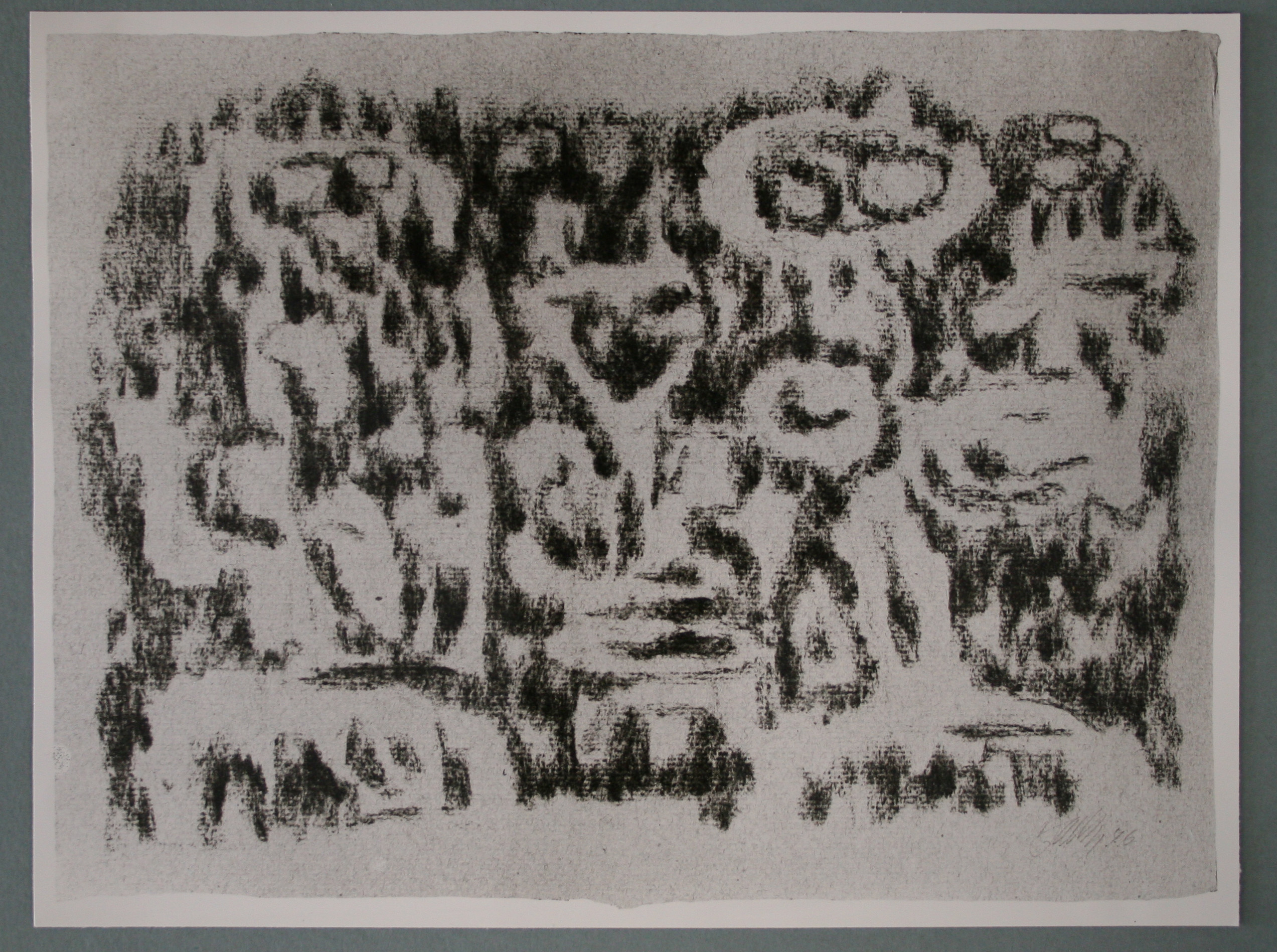 Kohle auf rosafarbigem Bütten mit rötlichen Fasern