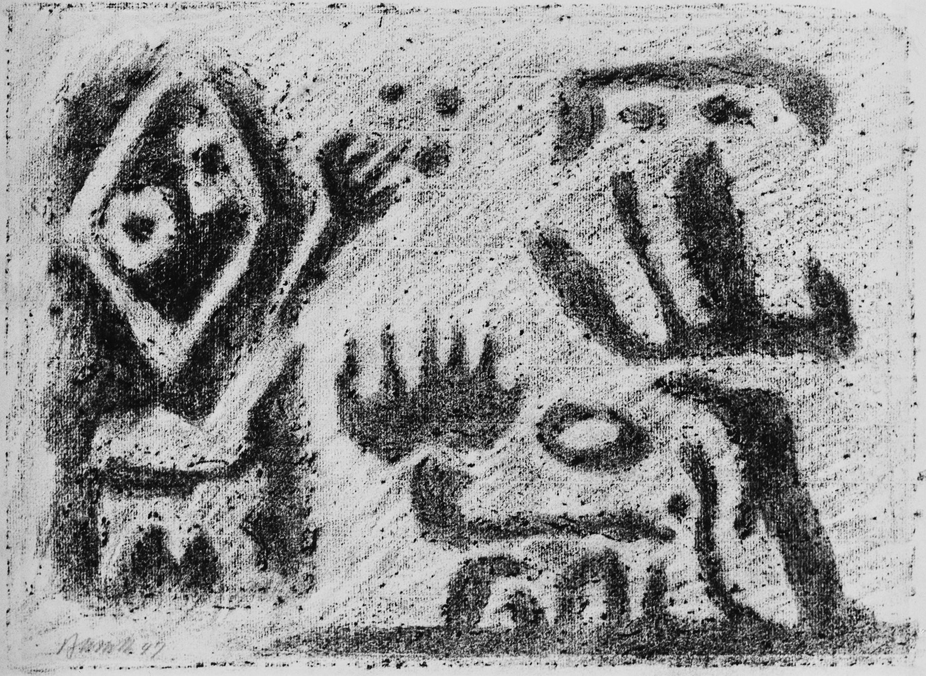 Kohle, gewischt, Ölkreide in Schwarz, durchgerieben, fixiert, auf chamoisfarbigem Ingres-Bütten