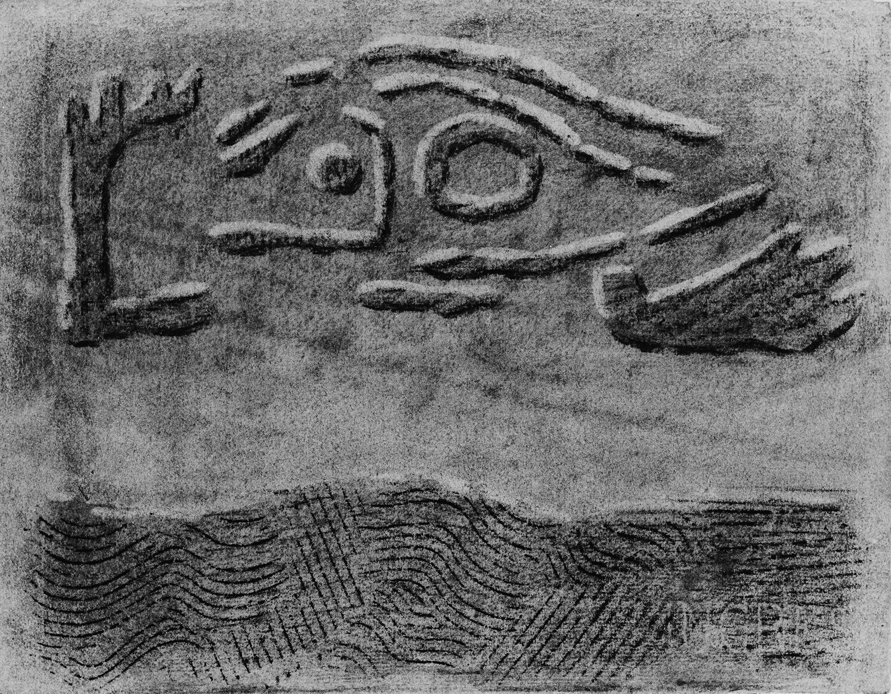 Kohle, gewischt, radiert, Ölkreide in Schwarz, durchgerieben, fixiert, auf rosafarbigem Ingres-Bütten mit Wz. r. u.: INGRES