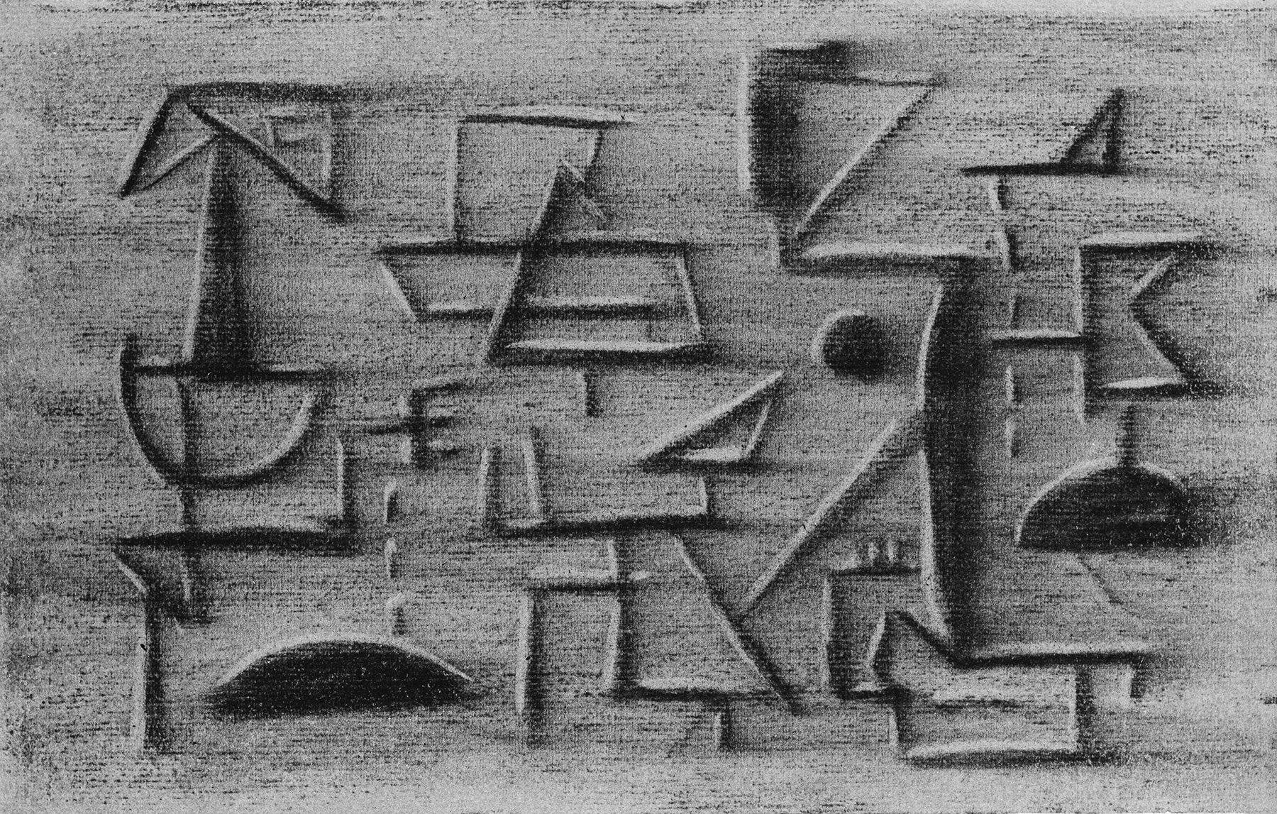 Kohle, gewischt, radiert, fixiert, auf hellbraunem Ingres-Bütten