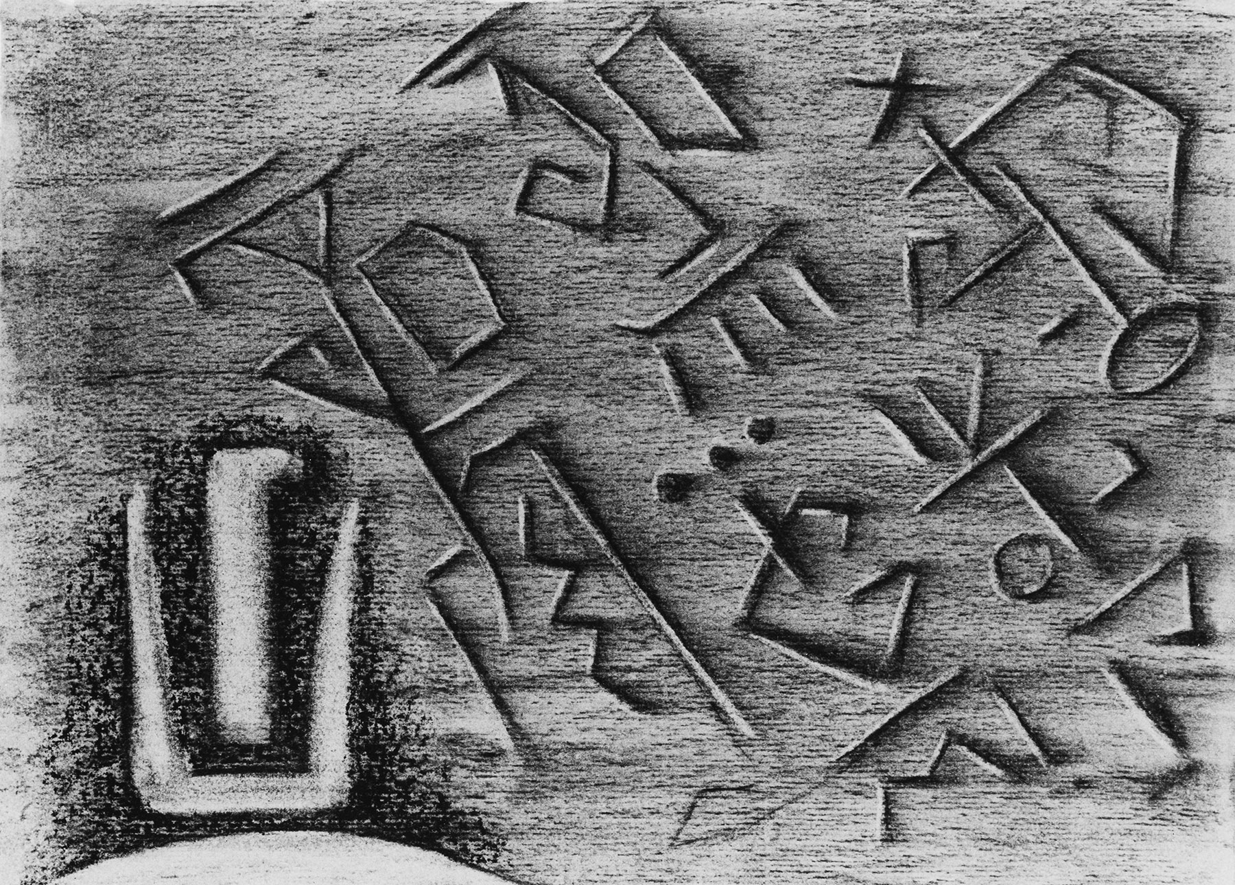Kohle, gewischt, radiert, Ölkreide in Schwarz, durchgerieben, fixiert, auf chamoisfarbigem Ingres-Bütten