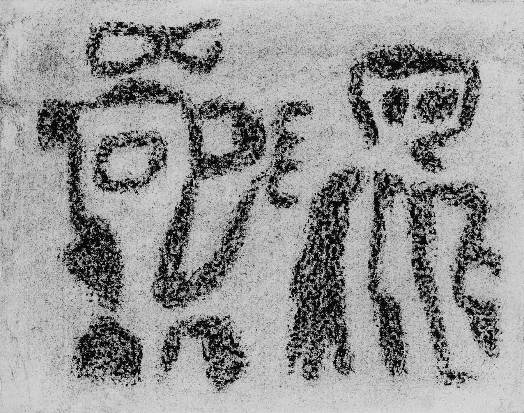 Kohle, gewischt, Ölkreide in Schwarz, fixiert, auf chamoisfarbigem Ingres-Bütten