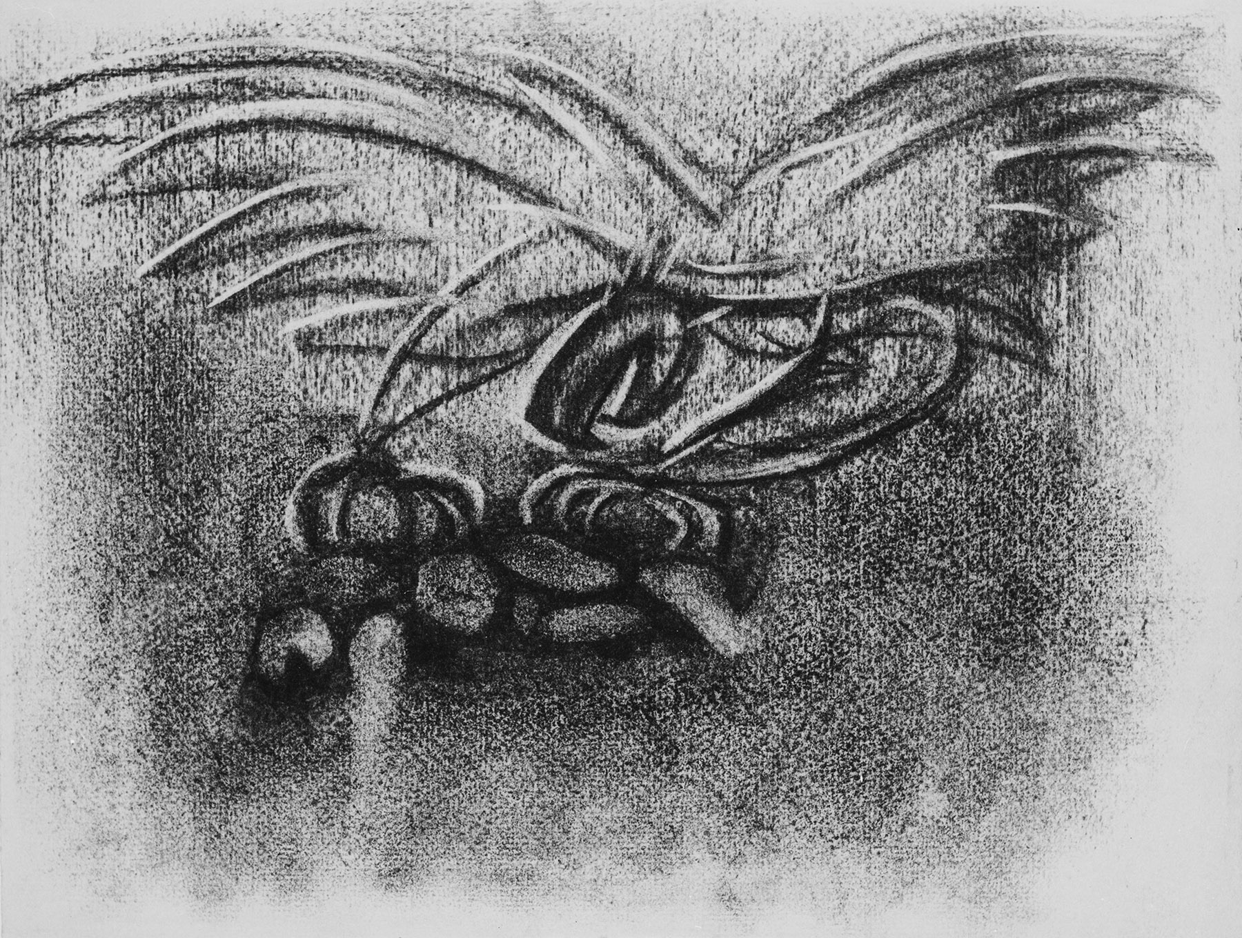 Kohle, gewischt, radiert, fixiert, auf chamoisfarbigem Ingres-Bütten