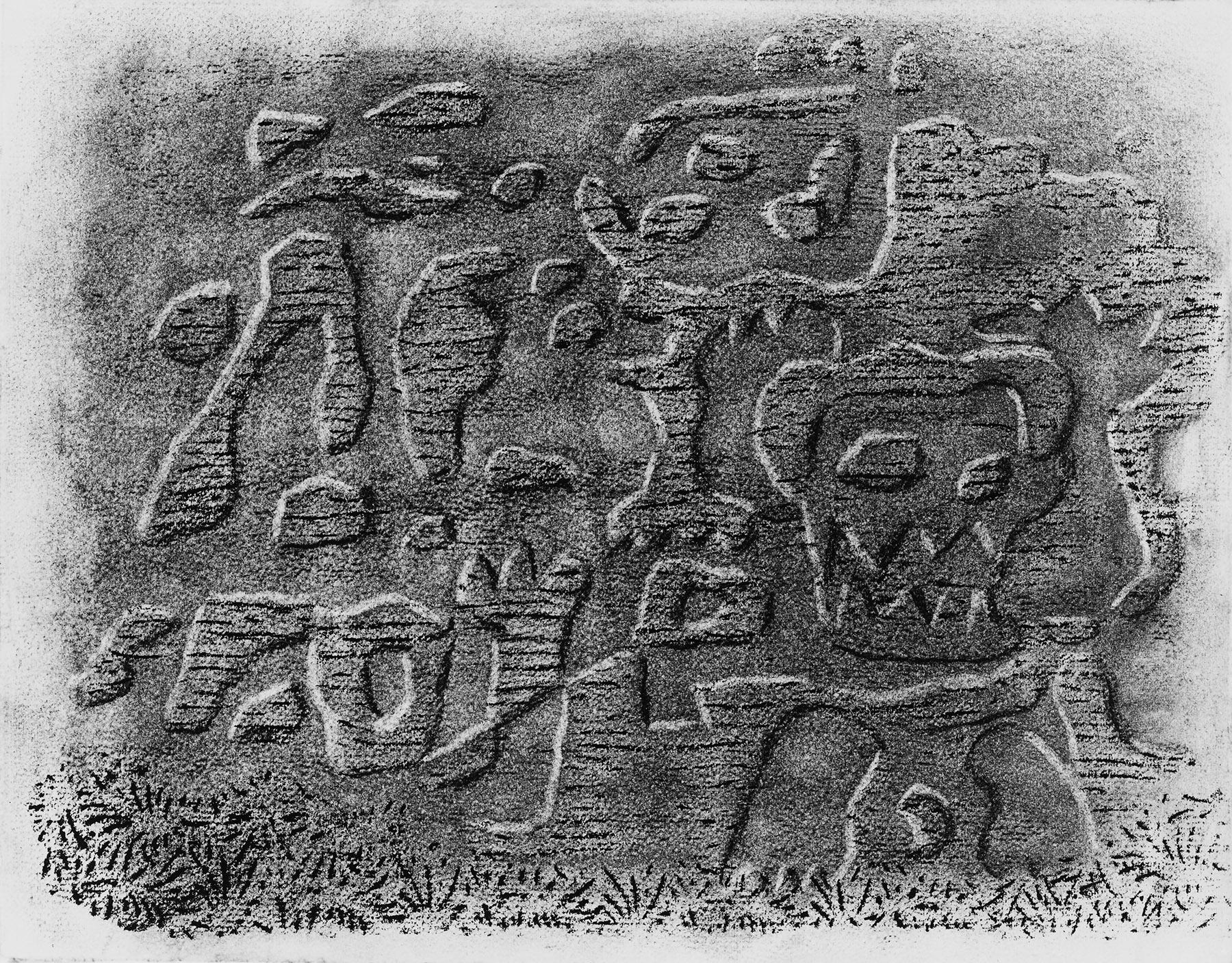 Kohle, gewischt, radiert, Ölkreide in Schwarz, durchgerieben, fixiert, auf chamoisfarbigem Ingres-Bütten mit Wz. l. u.: ..NTGOLFIER FRANCE (beschnitten).