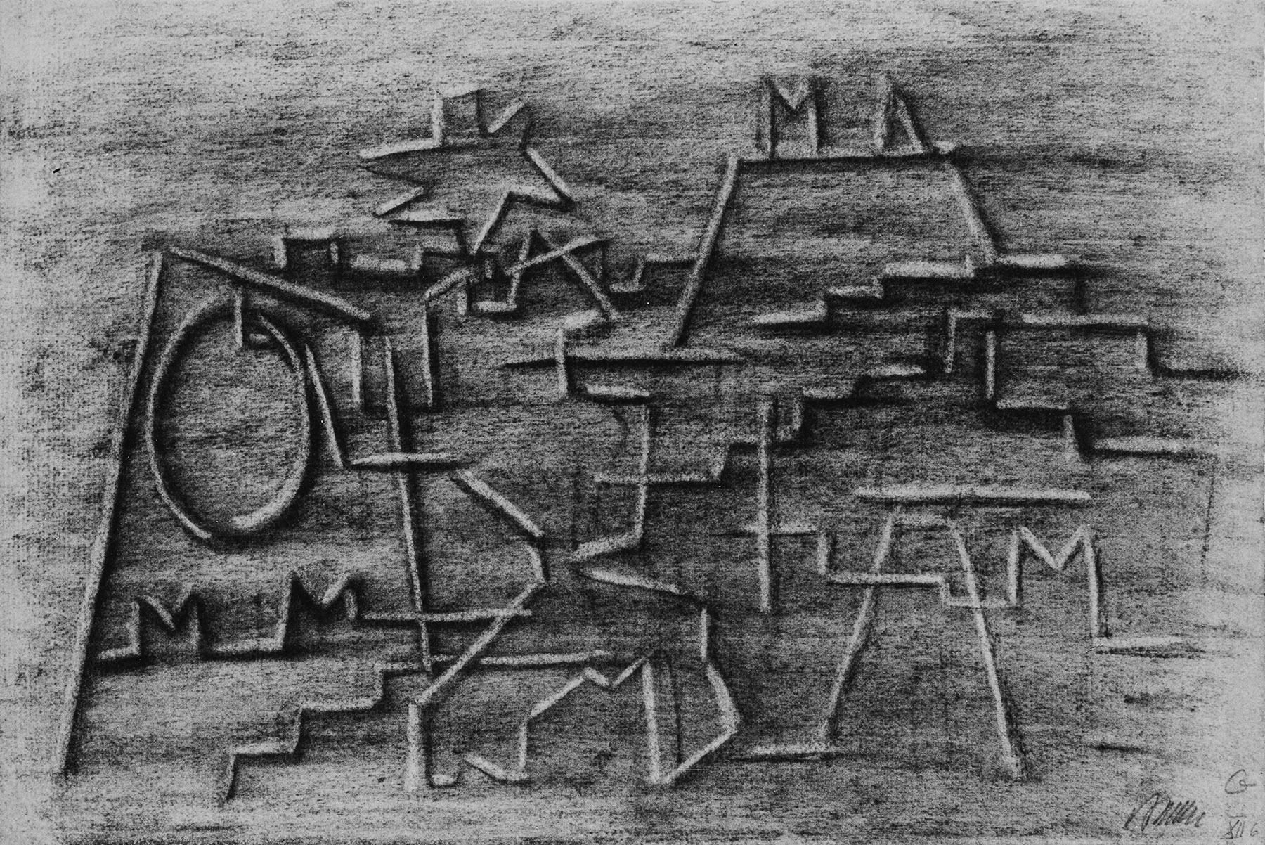 Kohle, gewischt, radiert, fixiert, auf chamoisfarbigem bis hellgrauem Ingres-Bütten