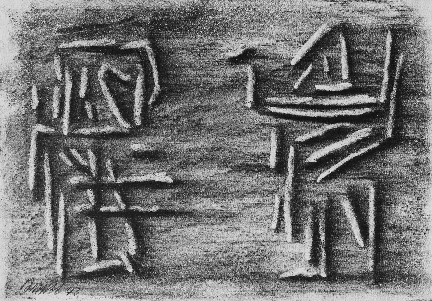 Kohle in Braun, auf elfenbeinfarbigem Papier