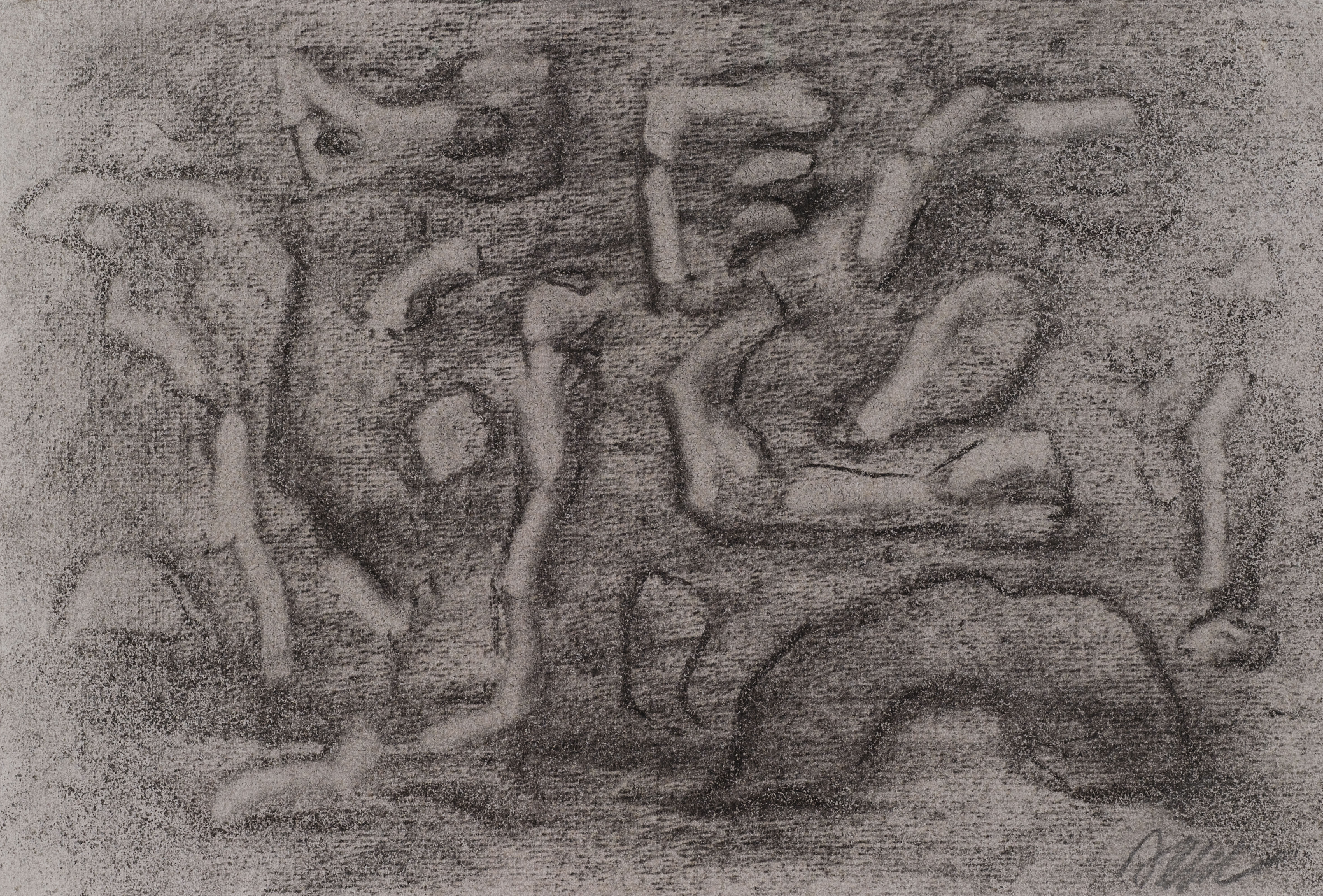 Kohle, Kreide, gelbe Kreide, auf grauem Bütten