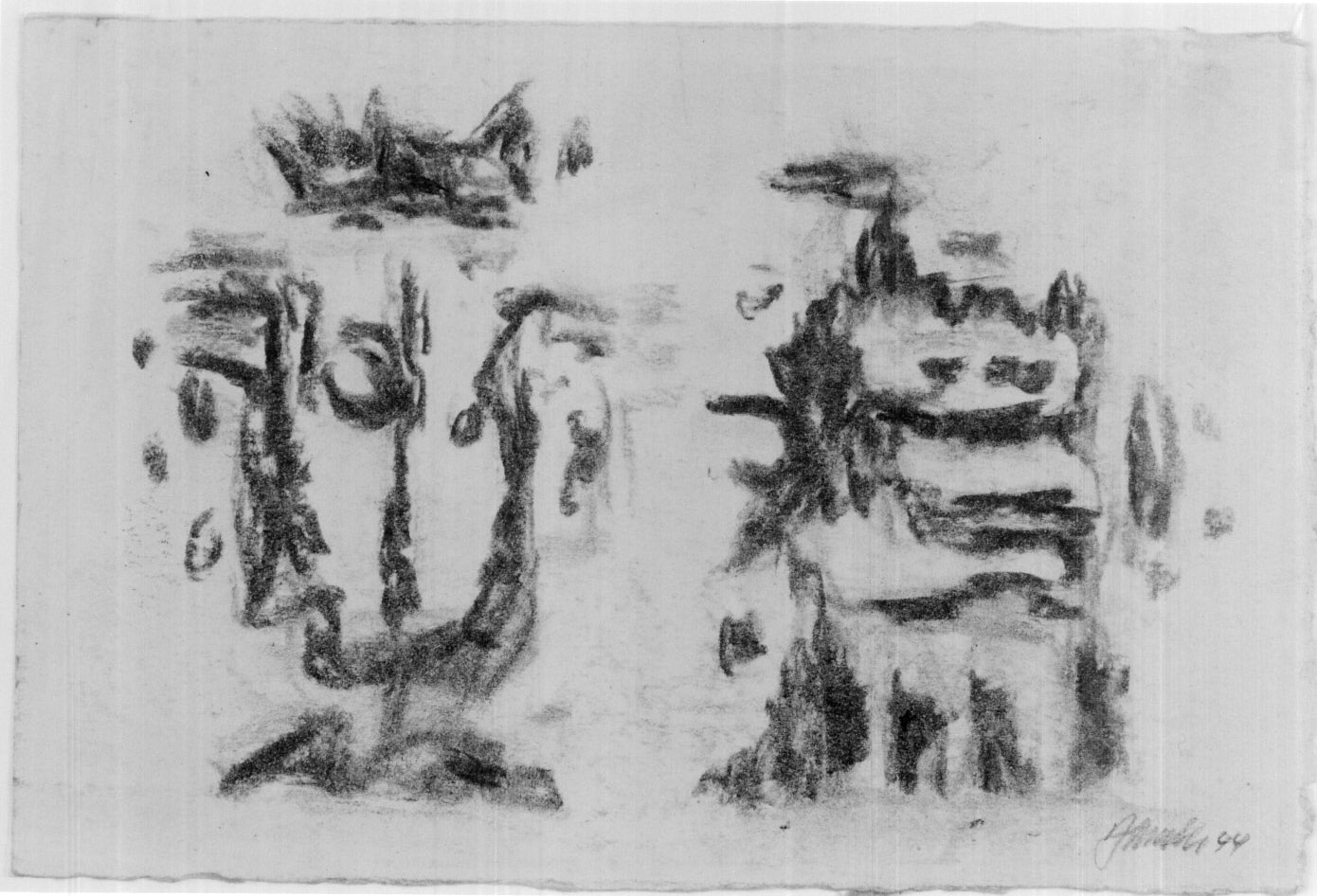 Kohle auf gelblichem Zeichenpapier