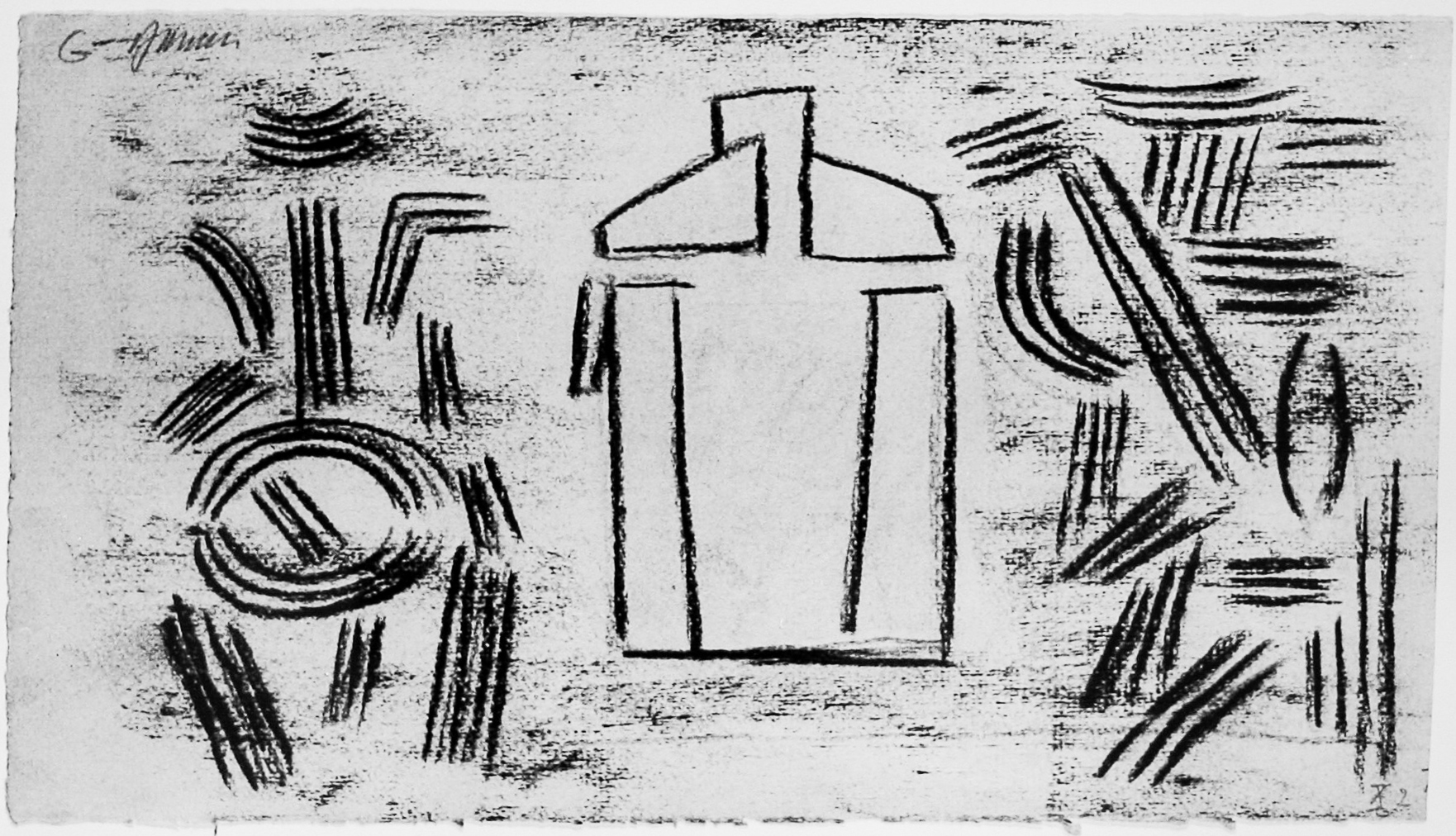 Kohle, z. T. gewischt, fixiert, auf chamoisfarbigem, am Rand u. fransig abgetrenntem Ingres-Bütten