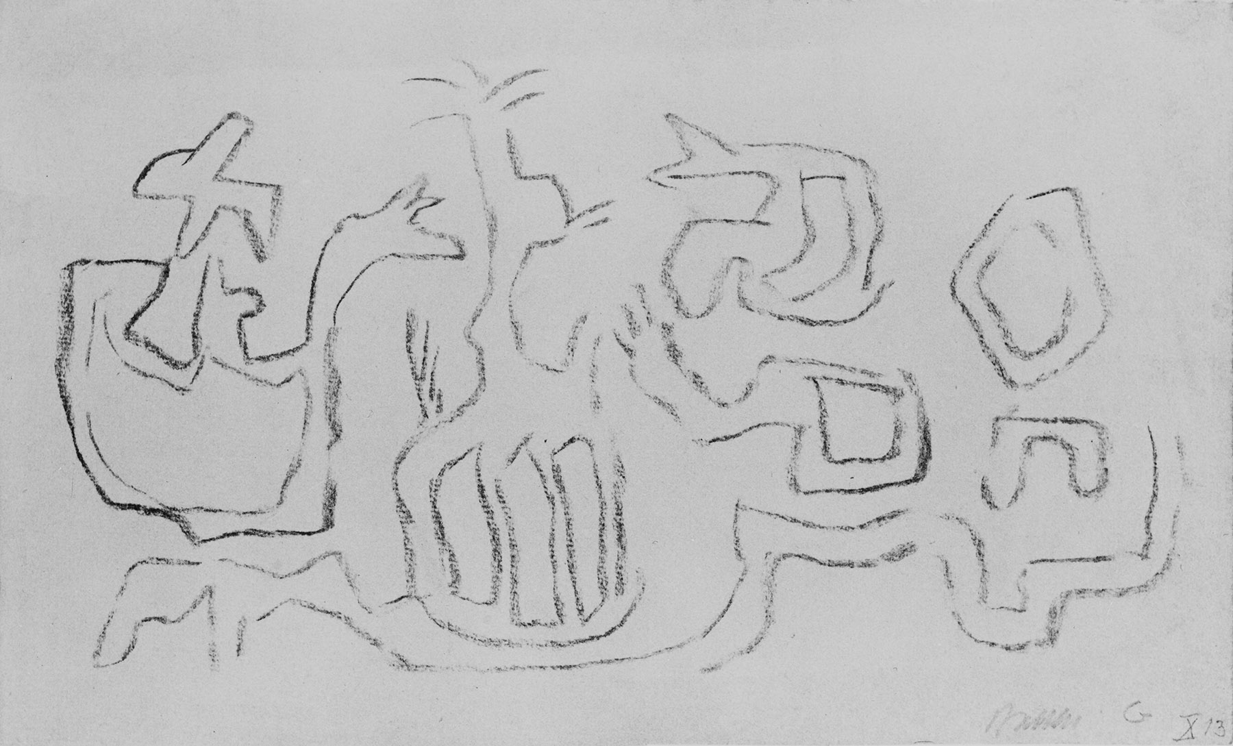 Kohle, fixiert, auf chamoisfarbigem, am Rand r. und u. leicht unregelmäßigem Ingres-Bütten