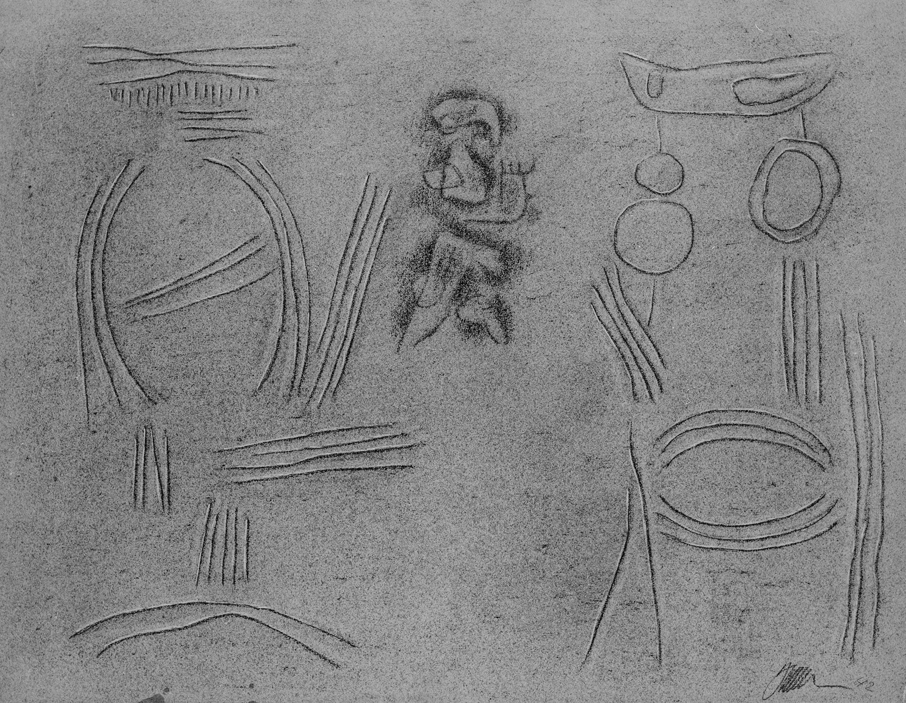 Vgl. Z 975. Vgl. die Lithographie Sp 152 von 1947. Vgl. das Gemälde von 1942, G 726. (fkb)   Irrtümliche Datierung Baumeisters auf 1942.