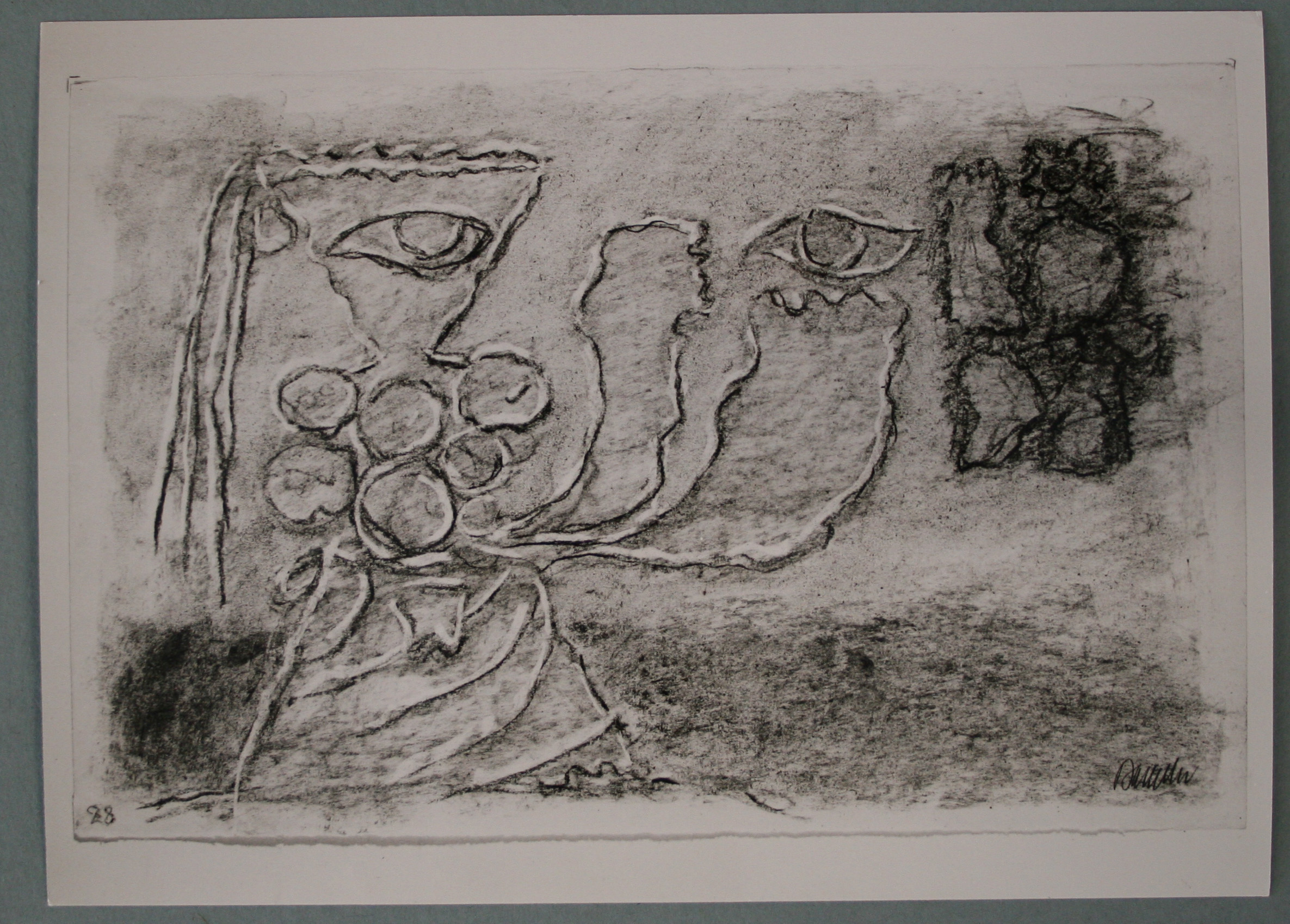 Kohle, gewischt, radiert, fixiert, auf chamoisfarbigem, imitiertem Japanpapier