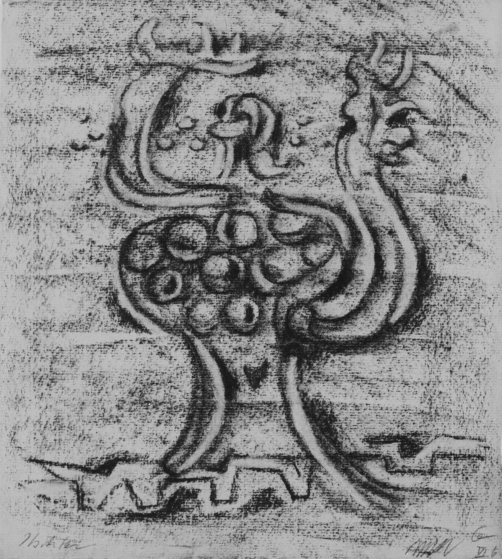 Kohle, gewischt, radiert, fixiert, auf beigefarbigem, Rand l. und o. unregelmäßig abgetrenntem Ingres-Bütten mit Wz. l. u.: INGRES