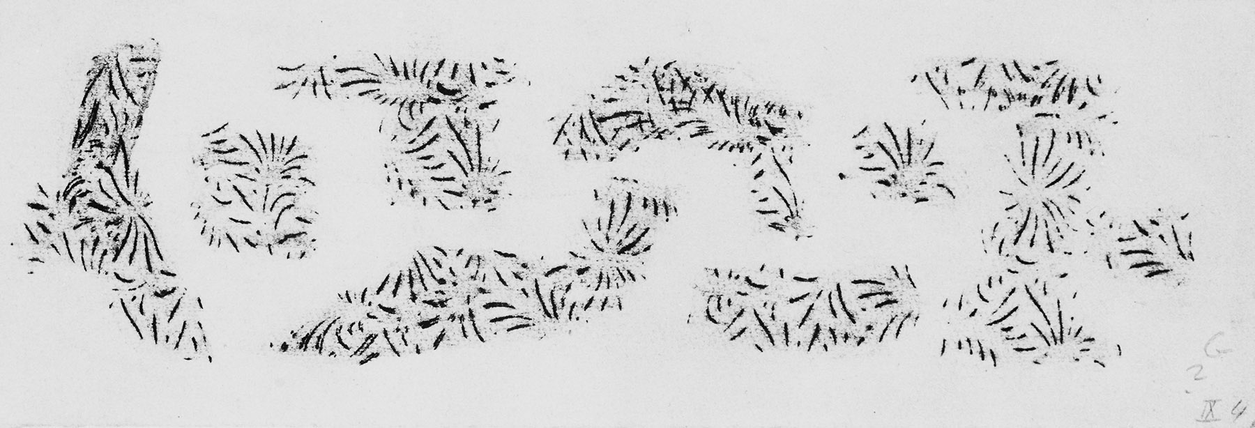 Kohle, gewischt, Ölkreide in Schwarz, durchgerieben, fixiert, auf chamoisfarbigem, am Rand o. fransig abgetrenntem Ingres-Bütten