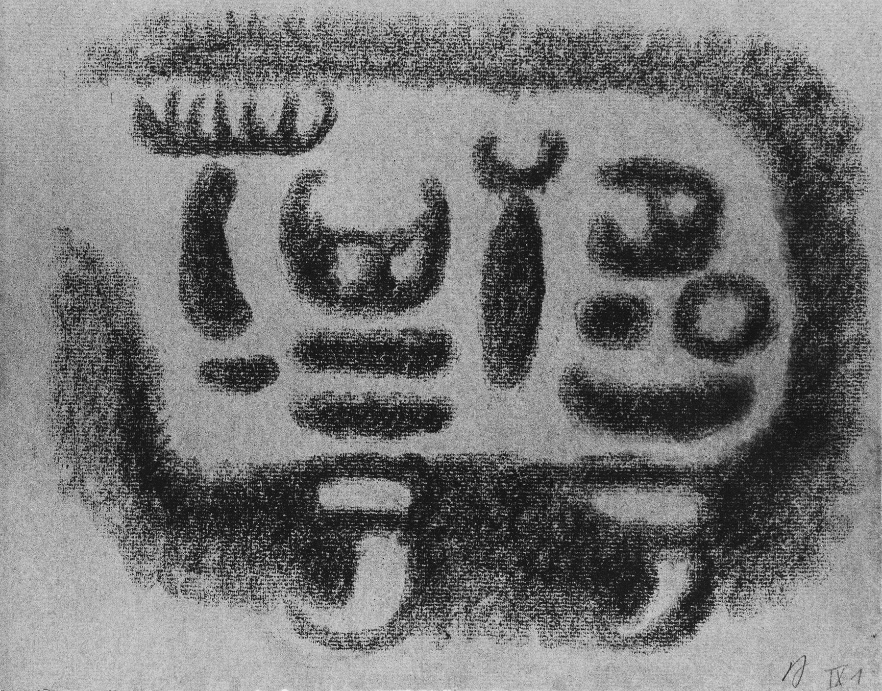 Kohle, fixiert, auf olivgrünem, am Rand o. unregelmäßigem Ingres-Bütten mit Wz. l. u.: PMF (ITALIA)