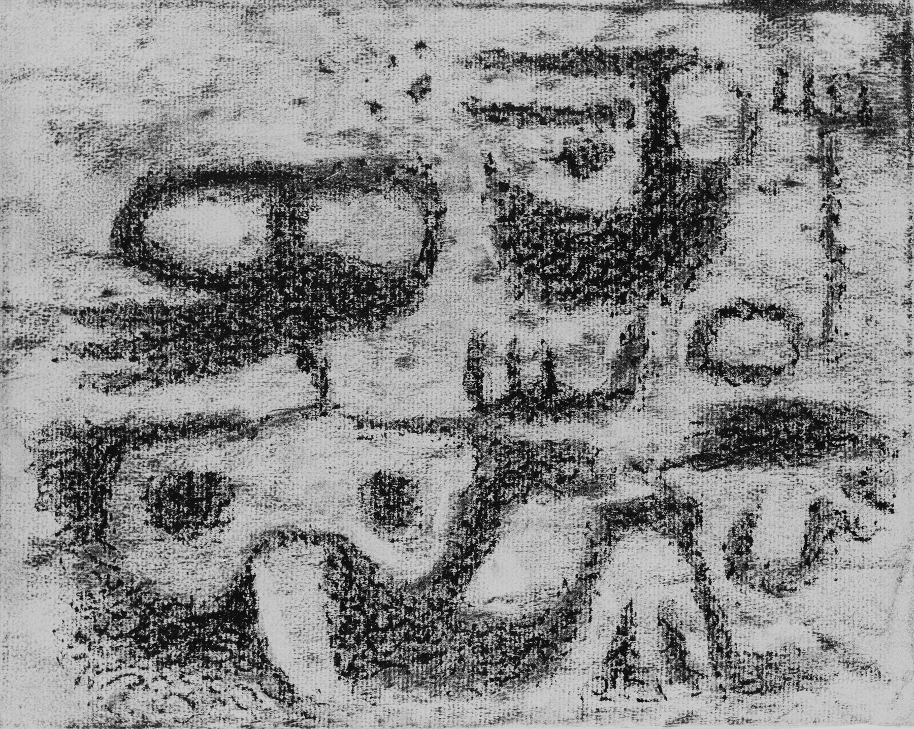 Kohle, gewischt, radiert, Ölkreide in Schwarz, durchgerieben, fixiert, auf maisgelbem Ingres-Bütten mit Wz. r. o.: ...IER FRANCE