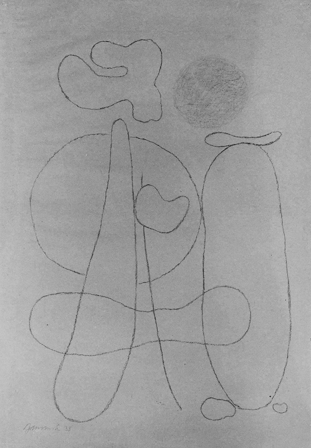 Vgl. das von B. 1938 datierte Gemälde G 515. Der gleiche Maßstab und die unregelmäßig starken Konturen weisen auf eine Durchdrückung hin.