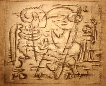 Kohle, radiert und gewischt, auf Bütten. Verso: figürliche Komposition