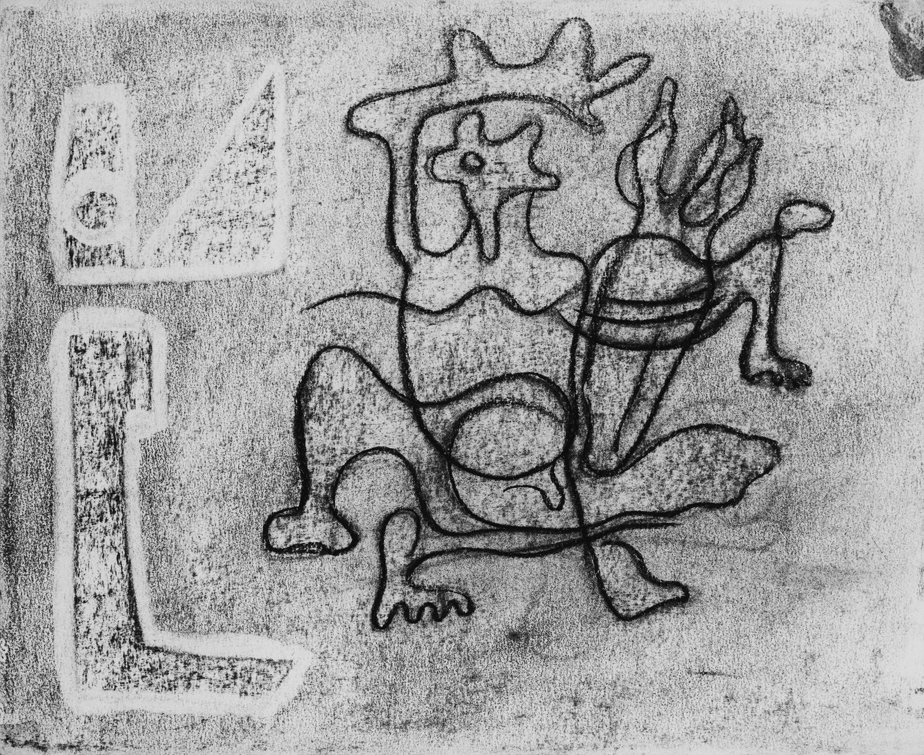Kohle, gewischt, radiert, fixiert, auf chamoisfarbigem Zeichenkarton