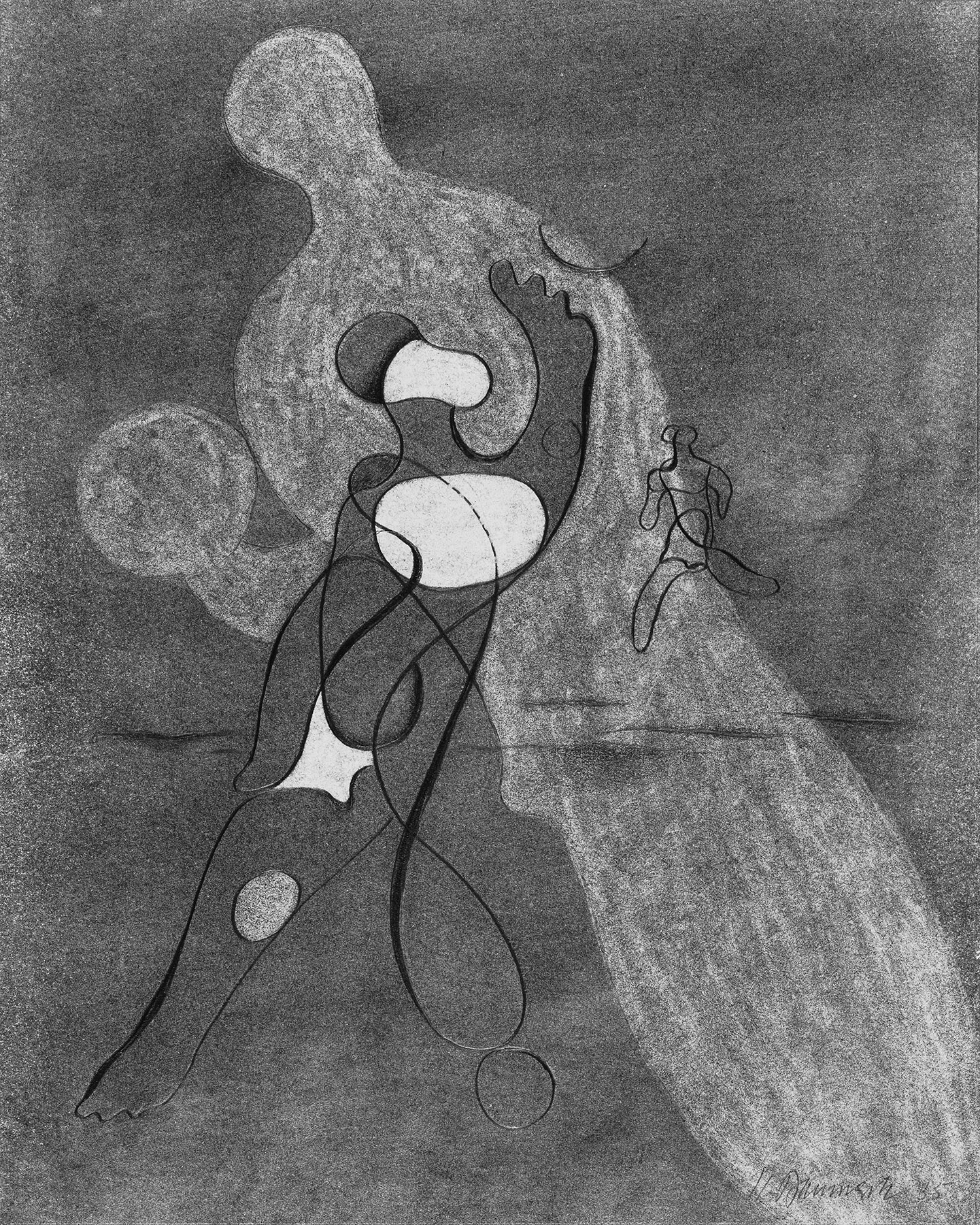 Kohle, gewischt, Bleistift, Einfassungslinien, auf chamoisfarbigem Zeichenkarton