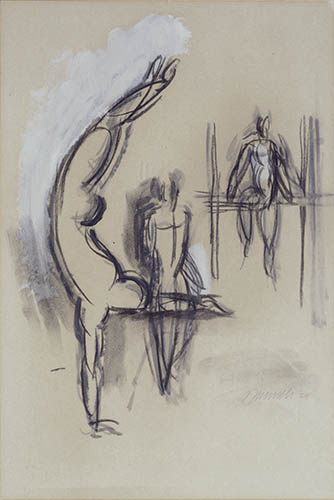Kohle, stellenweise gewischt, und Deckweiß auf graubraunem Velin