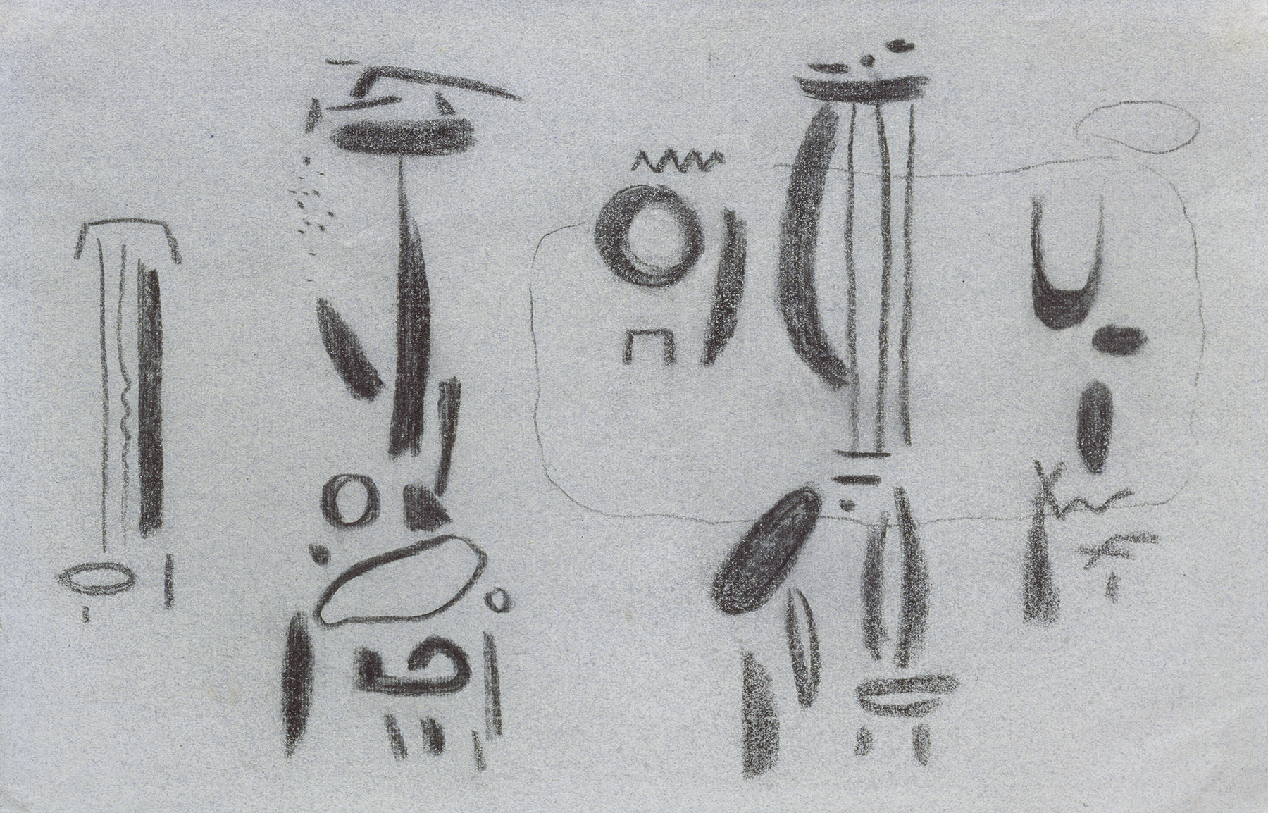 Kohle, fixiert, auf hellblauem Ingres-Bütten mit Wz. r. u.: INGRES