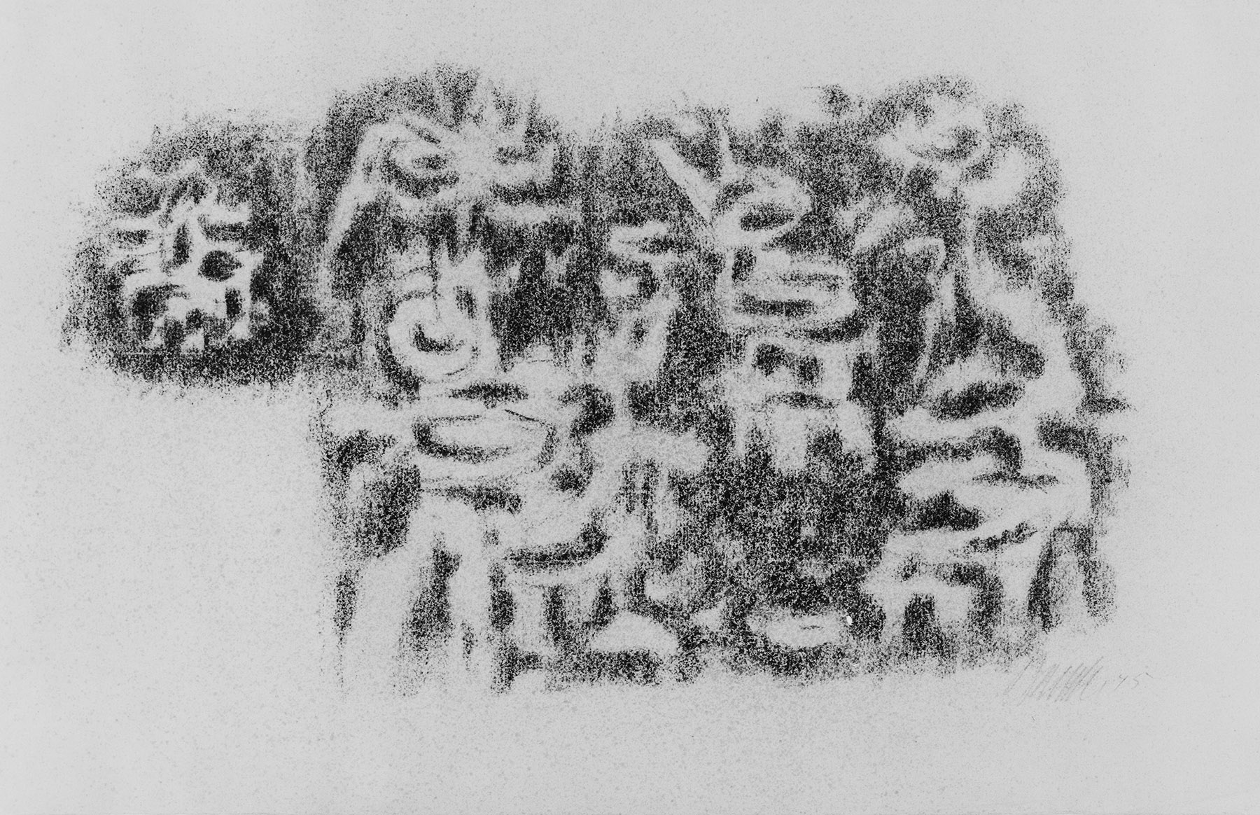 Kohle, gewischt, radiert, fixiert, auf Ingres-Bütten