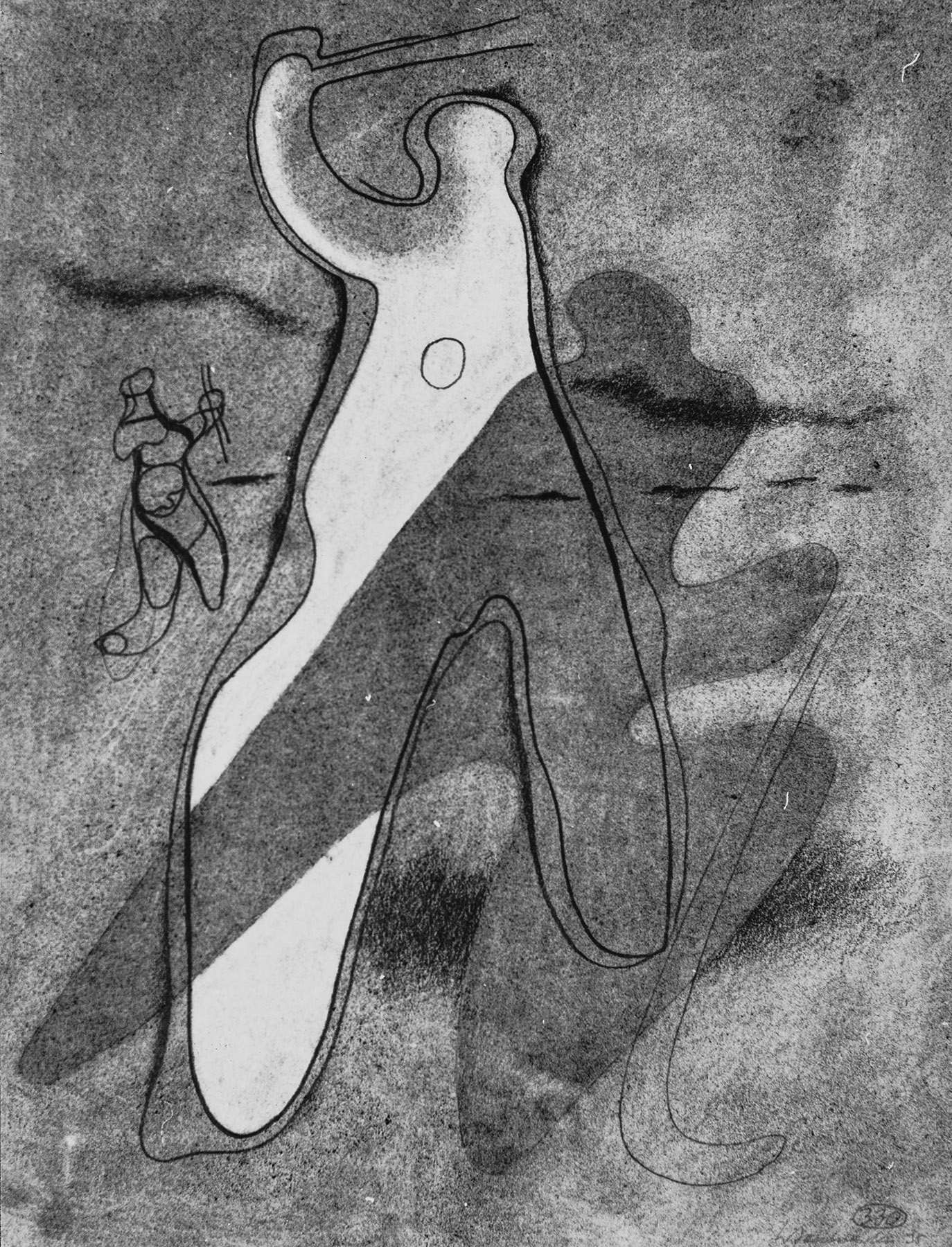 Kohle, gewischt, Bleistift, Ritzkonturen, fixiert, Einfassungslinien, auf chamoisfarbigem, am Rand l. perforiertem Zeichenkarton