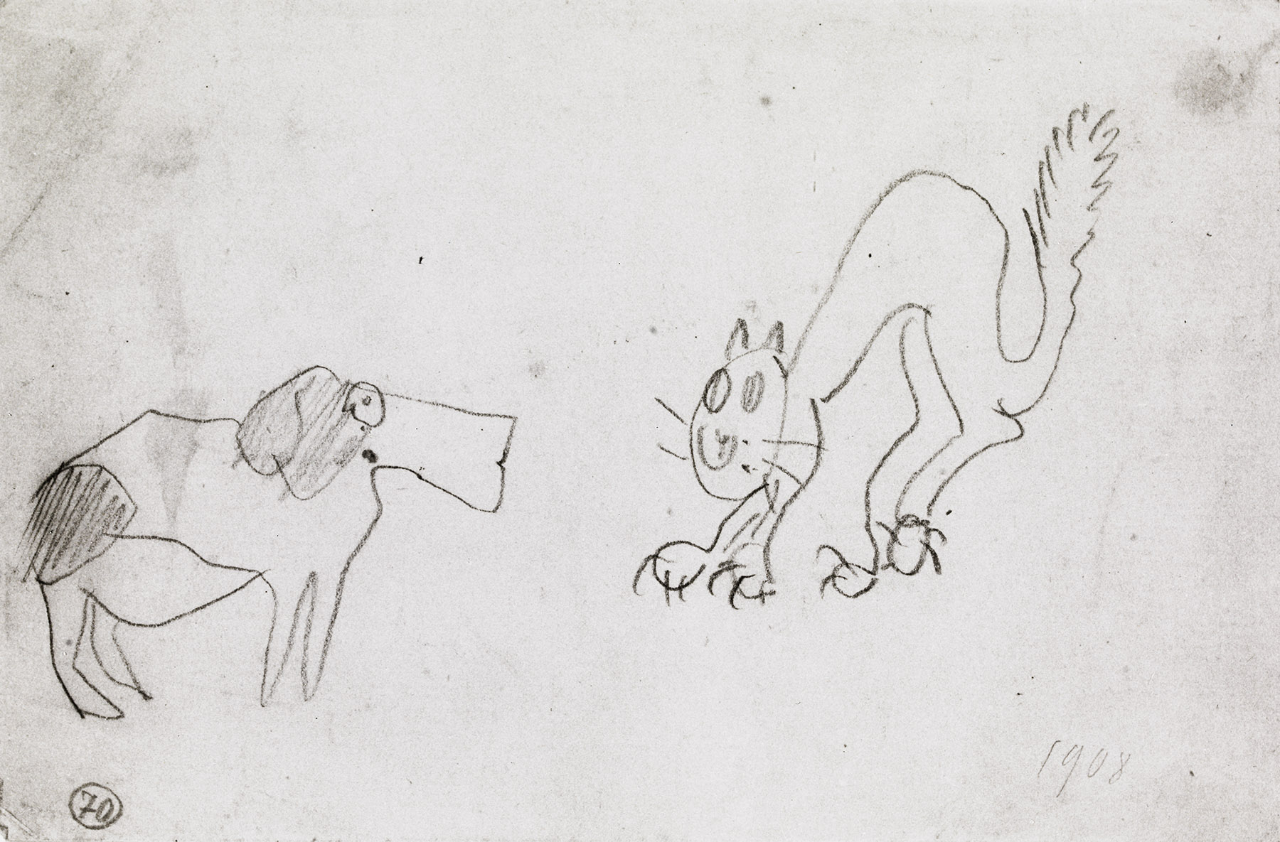 Die Zeichnung, von B. für aufhebenswert erachtet, wurde aus einem Skizzenbuch herausgerissen. Zugleich ist die Datierung nachgetragen worden. Ebenfalls später erfolgte die charakteristische Numerierung im Kreis links unten, mit der B. vor 1935 seine Zeichnungen der frühen 20er und 30er Jahre durchnumeriert hat. Offenbar hatte B. Gefallen an seiner Fähigkeit zur humoristischen oder skurrilen Überpointierung, sie kann als ein Motiv angesehen werden, das sein Werk durchzieht.