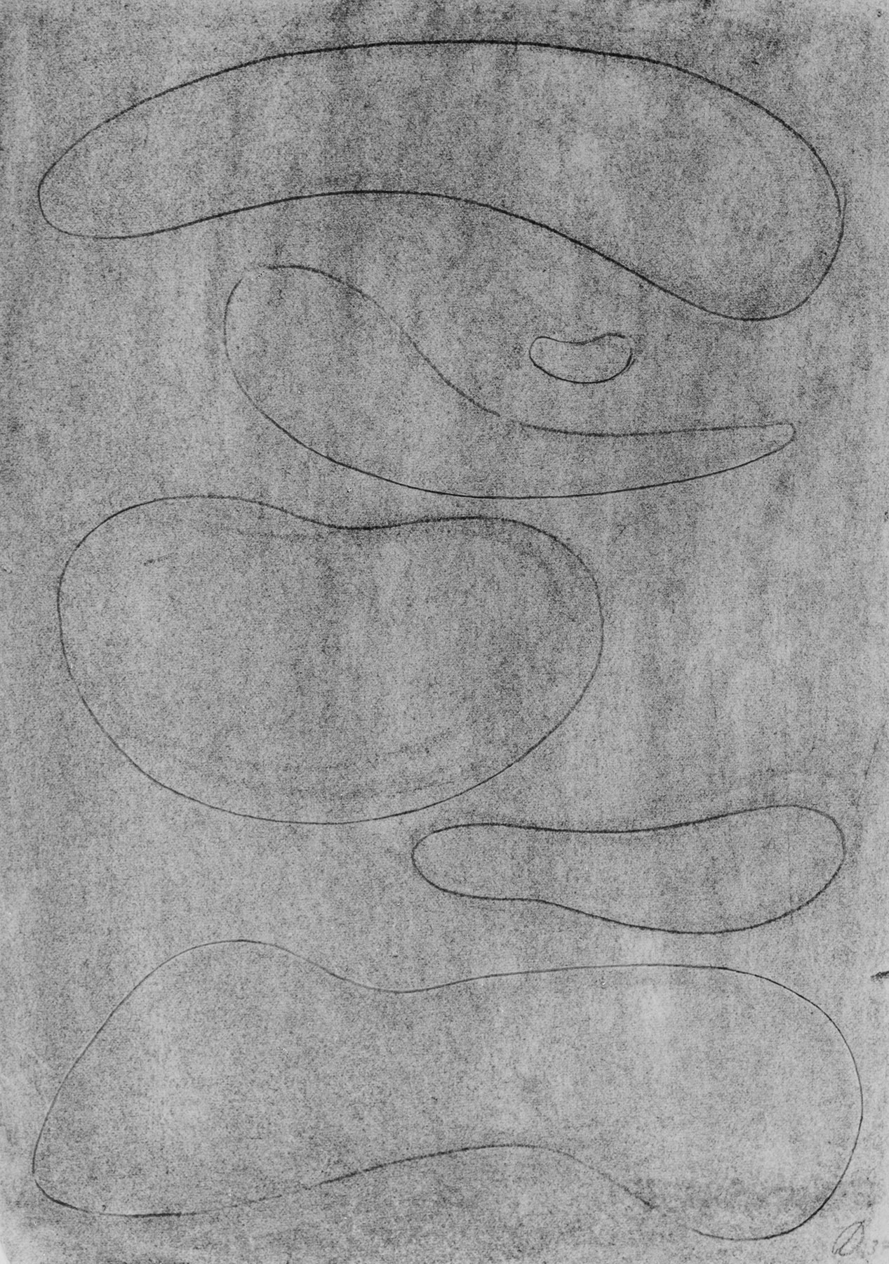 Kohle, gewischt, Bleistift, Skizzierung in Kohle (mit Abweichungen), fixiert, auf chamoisfarbigem, am Rand o. perforiertem, am Rand l. leicht unregelmäßig gerissenem Zeichenkarton