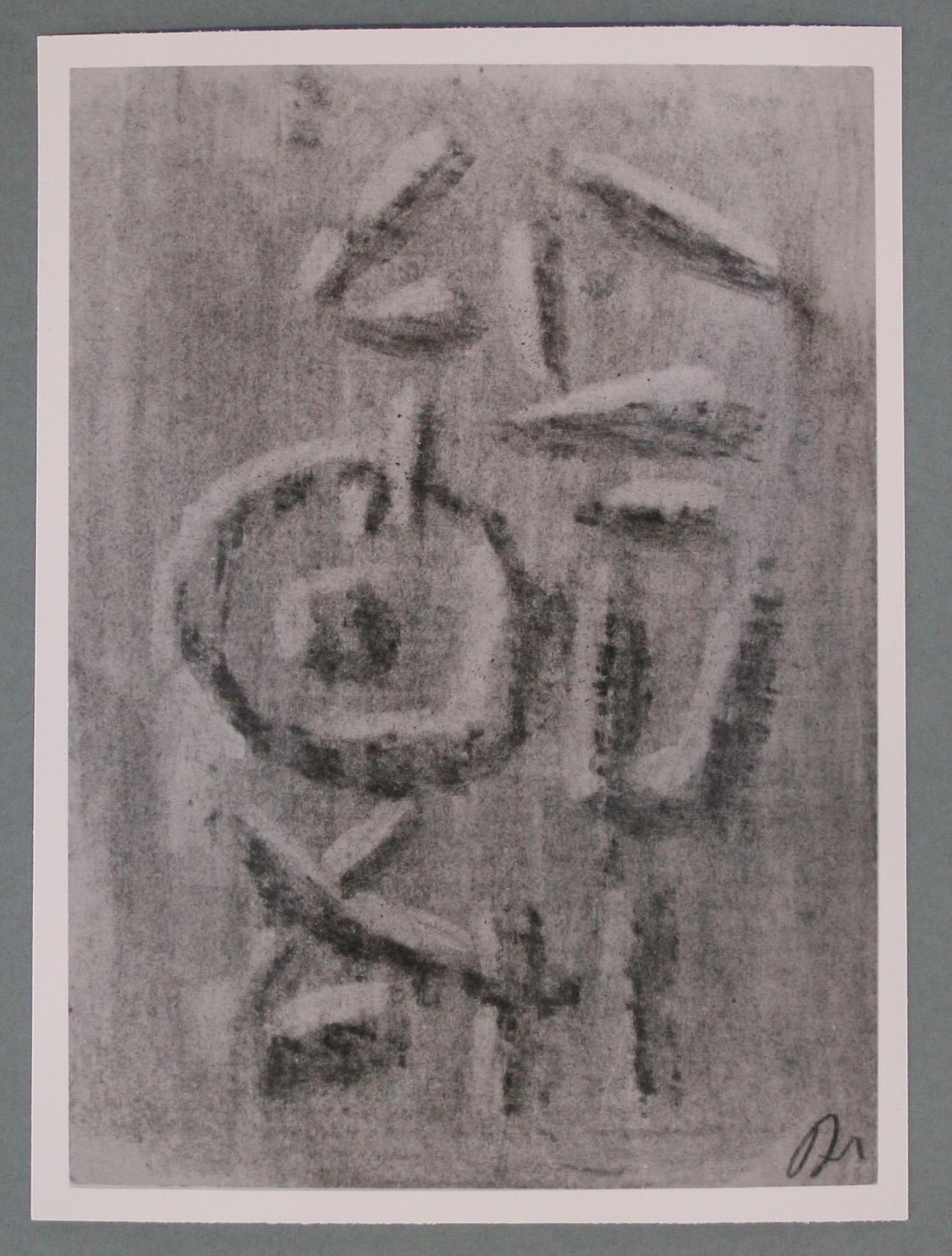 Kohle, gewischt, radiert, fixiert, auf Postkarte