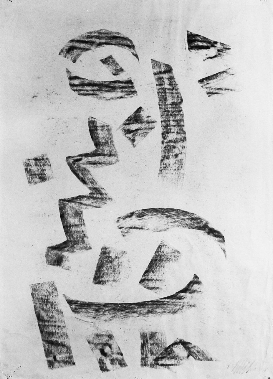 Kohle, z. T. durchgerieben, fixiert, auf Papier