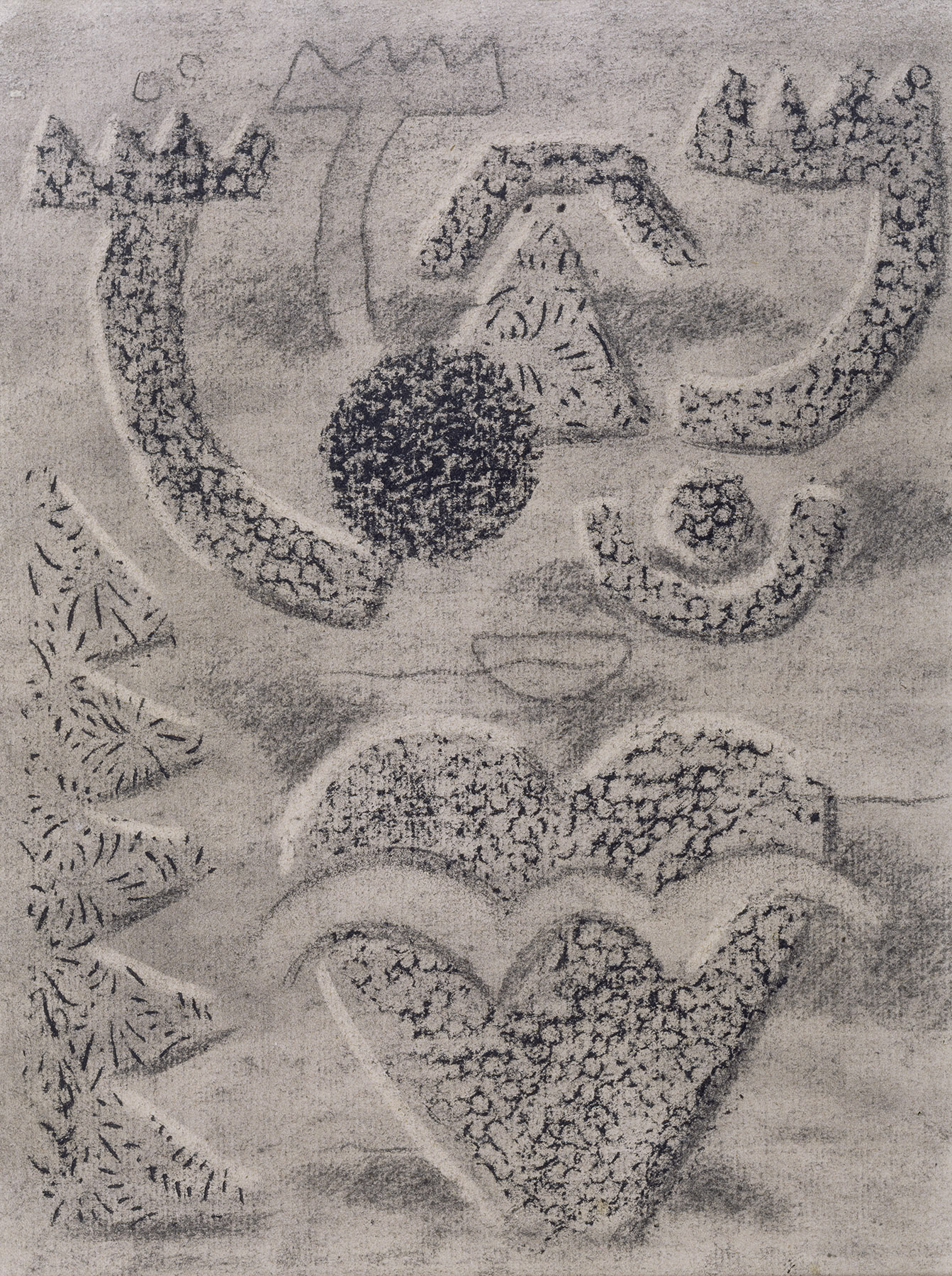 Kohle, gewischt, radiert, Kreide, auf Bütten