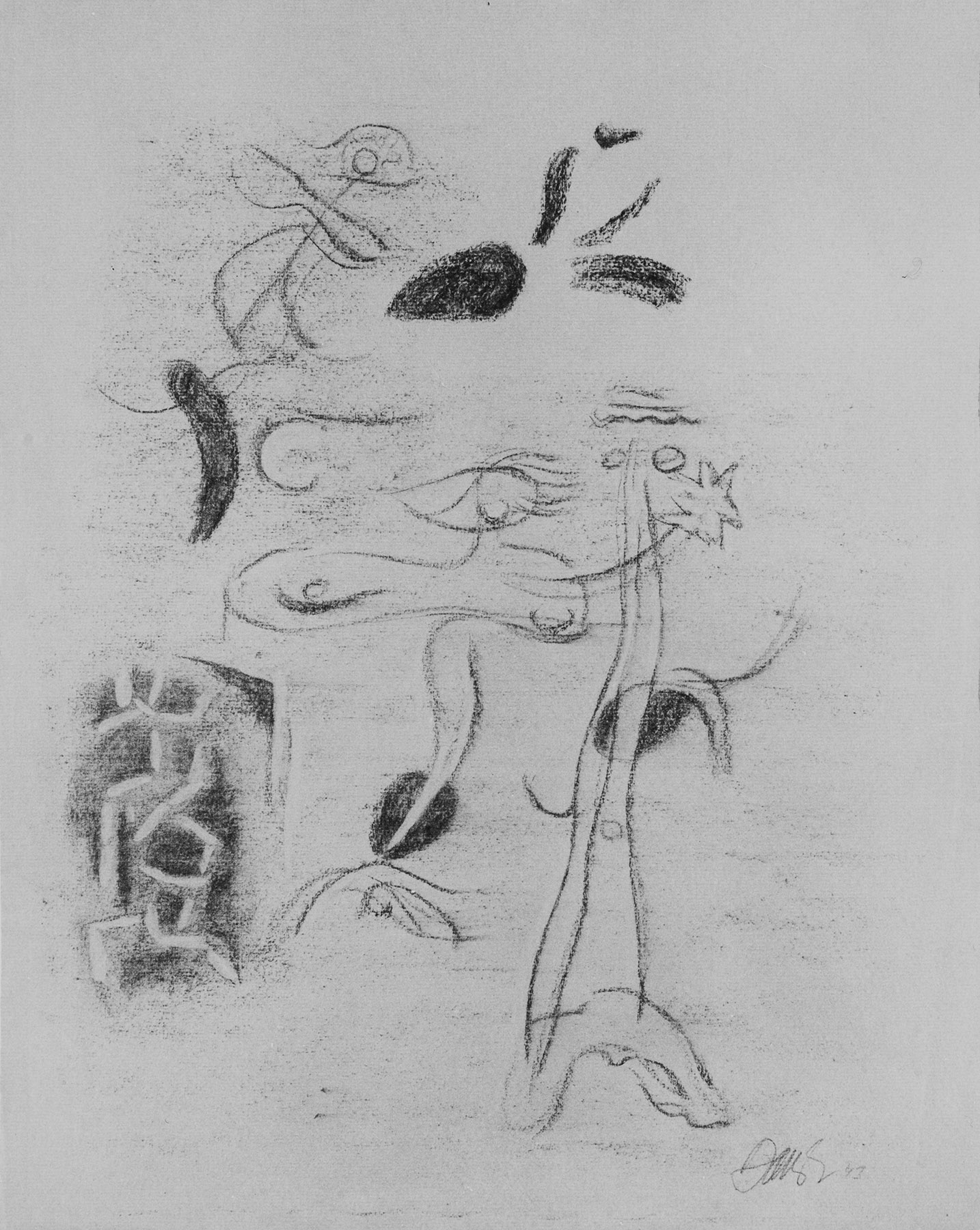 Kohle, gewischt, radiert, fixiert, auf hellbraunem Ingres-Bütten mit Wz. l. u.: INGRES
