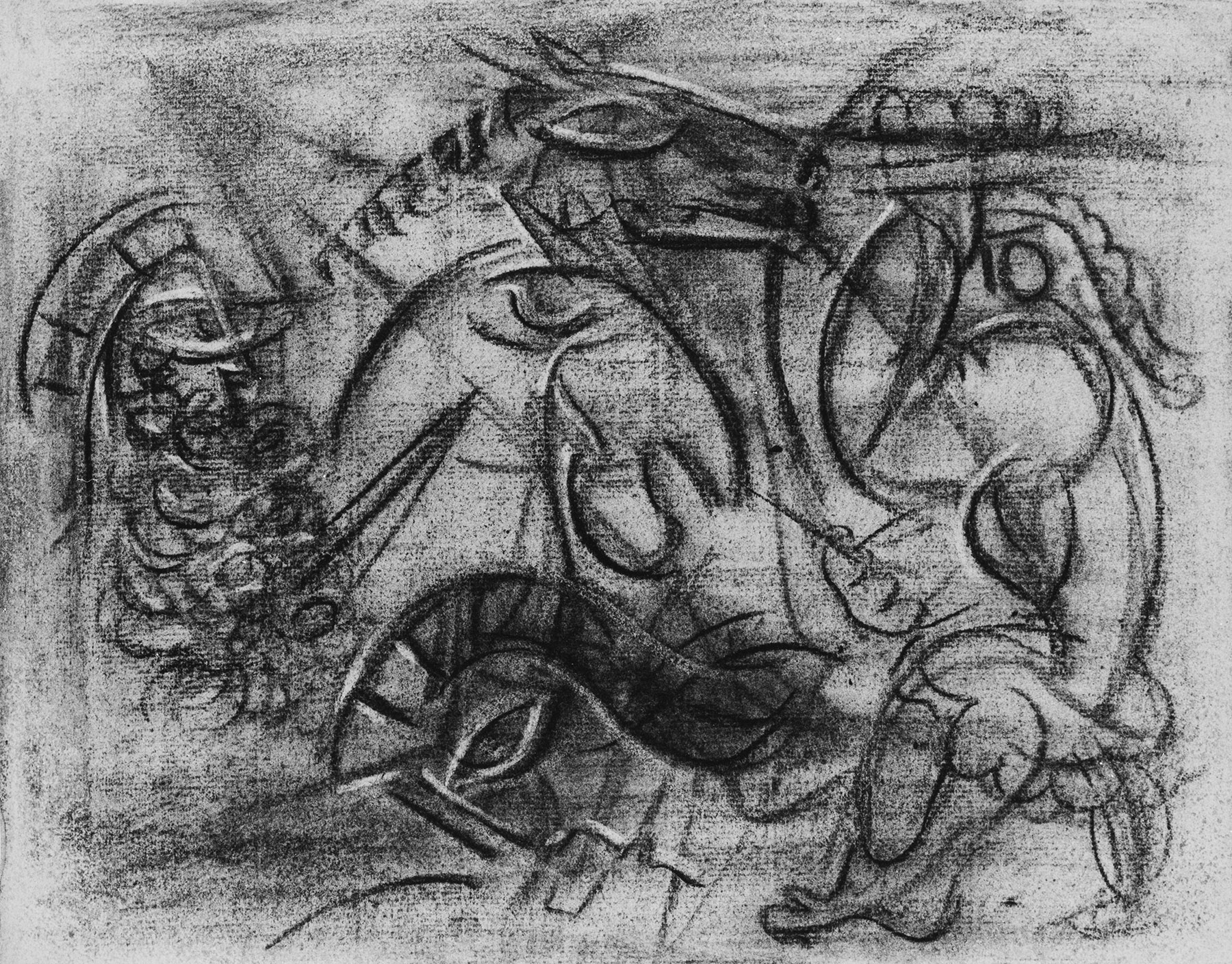 Kohle, gewischt, radiert, fixiert, auf chamoisfarbigem Ingres-Bütten