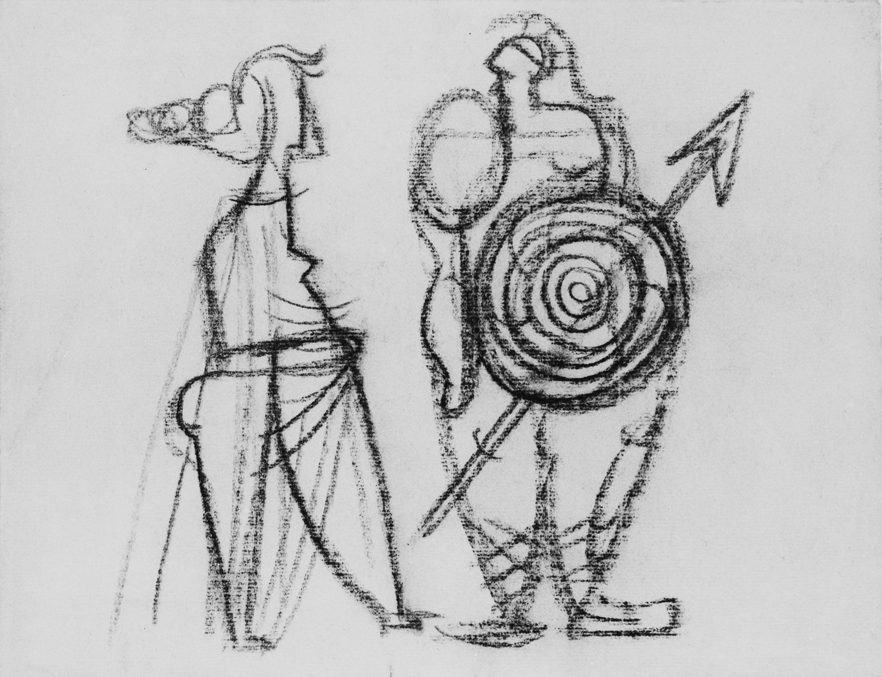 Kohle, fixiert, auf chamoisfarbigem Ingres-Bütten