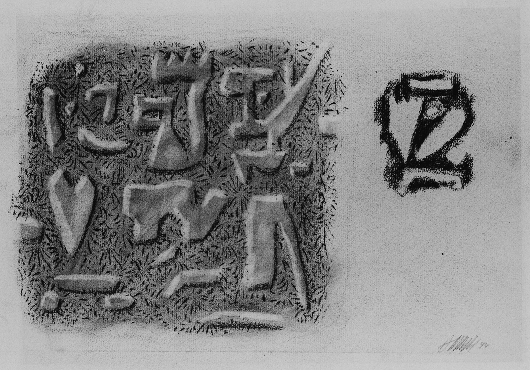 Kohle, gewischt, radiert, Ölkreide in Schwarz, durchgerieben, fixiert, auf maisgelbem Ingres-Bütten mit Wz. l. u.: ... GOLFIER FRANCE