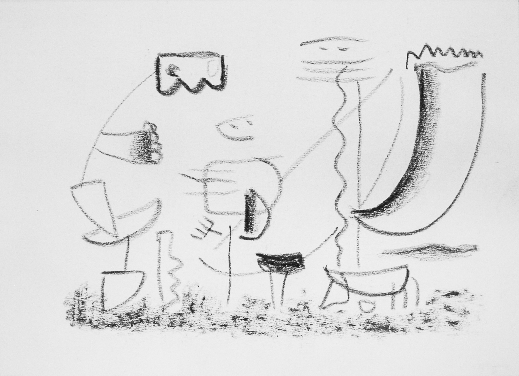 Ölkreide auf chamoisfarbigem Zeichenkarton