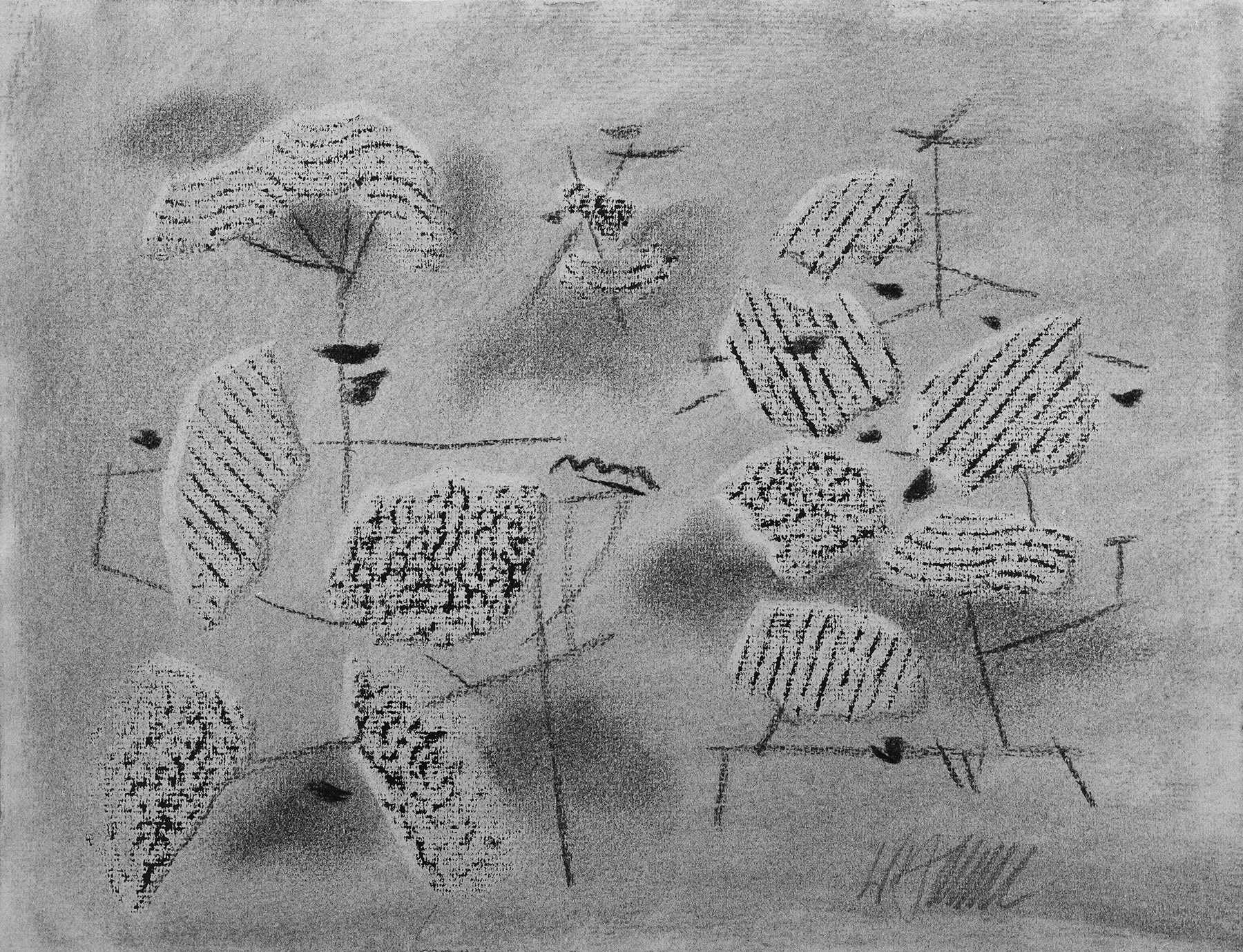 Kohle, gewischt, radiert, Kreide, auf gelblichem Ingres-Bütten
