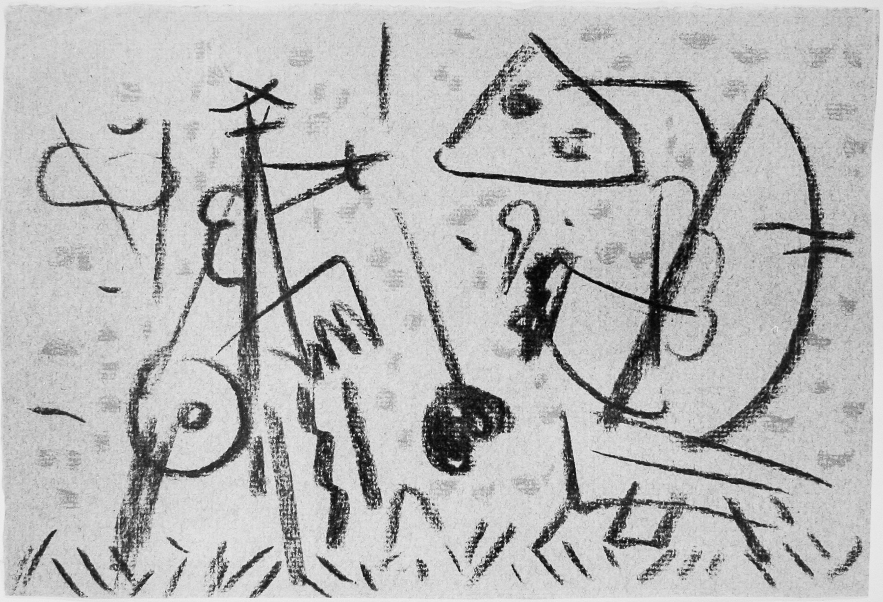 Kohle, Pastell in Ocker, fixiert, auf lichtblauem Ingres-Bütten mit Wz. l. o.: INGRES