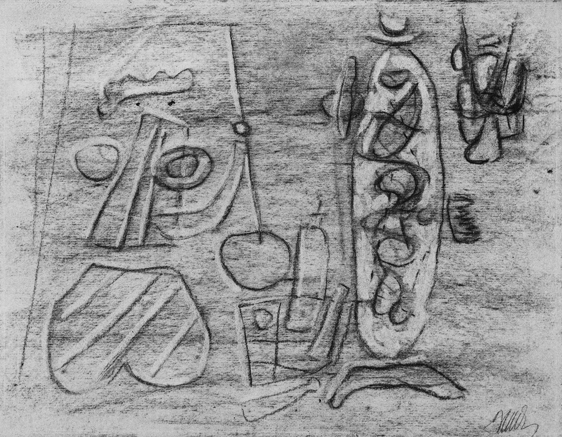 Kohle, gewischt, radiert, fixiert, auf chamoisfarbigem Ingres-Bütten mit Wz. r. o.: Hahn im Kreis