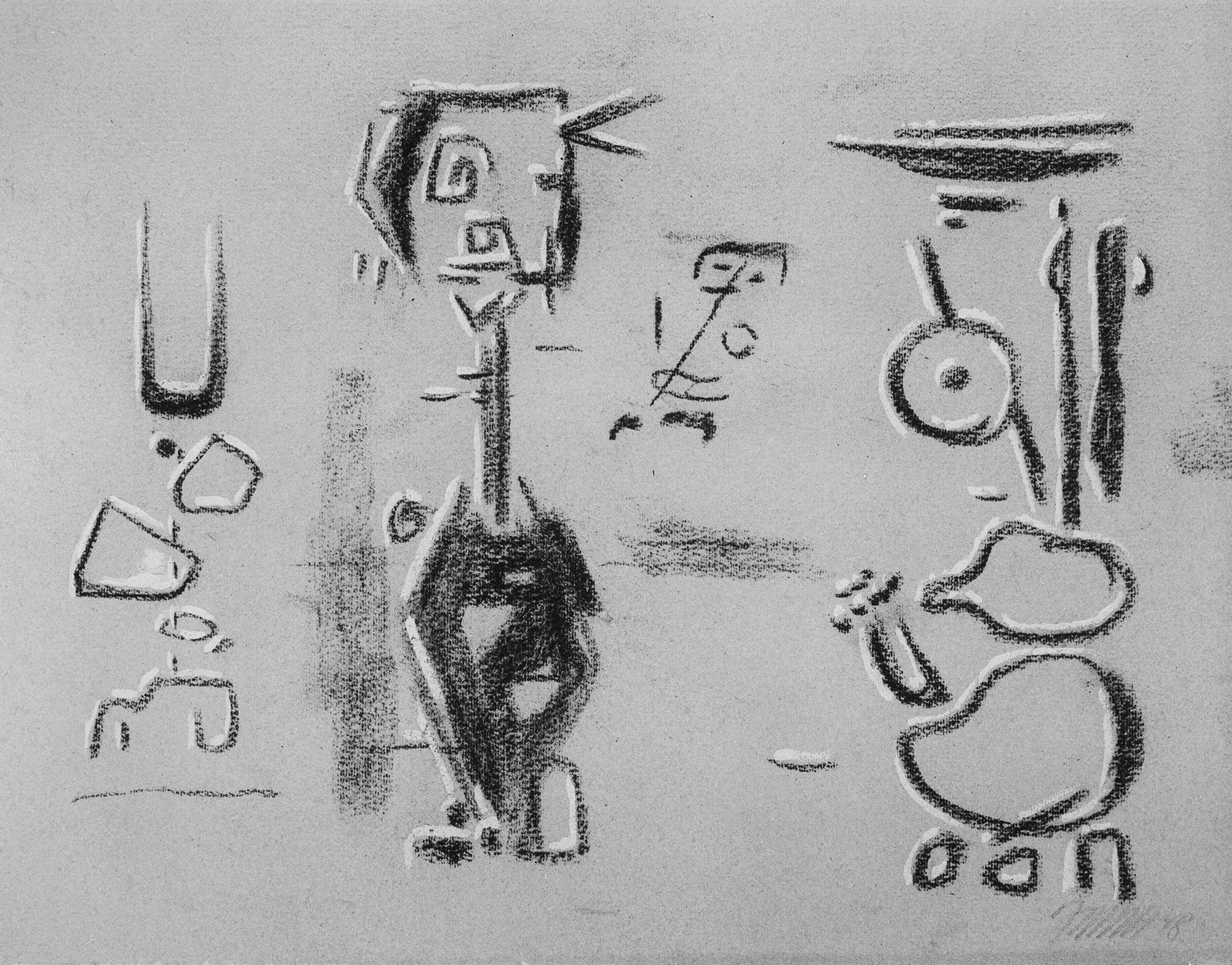 Kohle, Deckweiß, fixiert, auf maisgelbem Ingres-Bütten mit Wz. l. u.: ..NTGOLFIER FRANCE