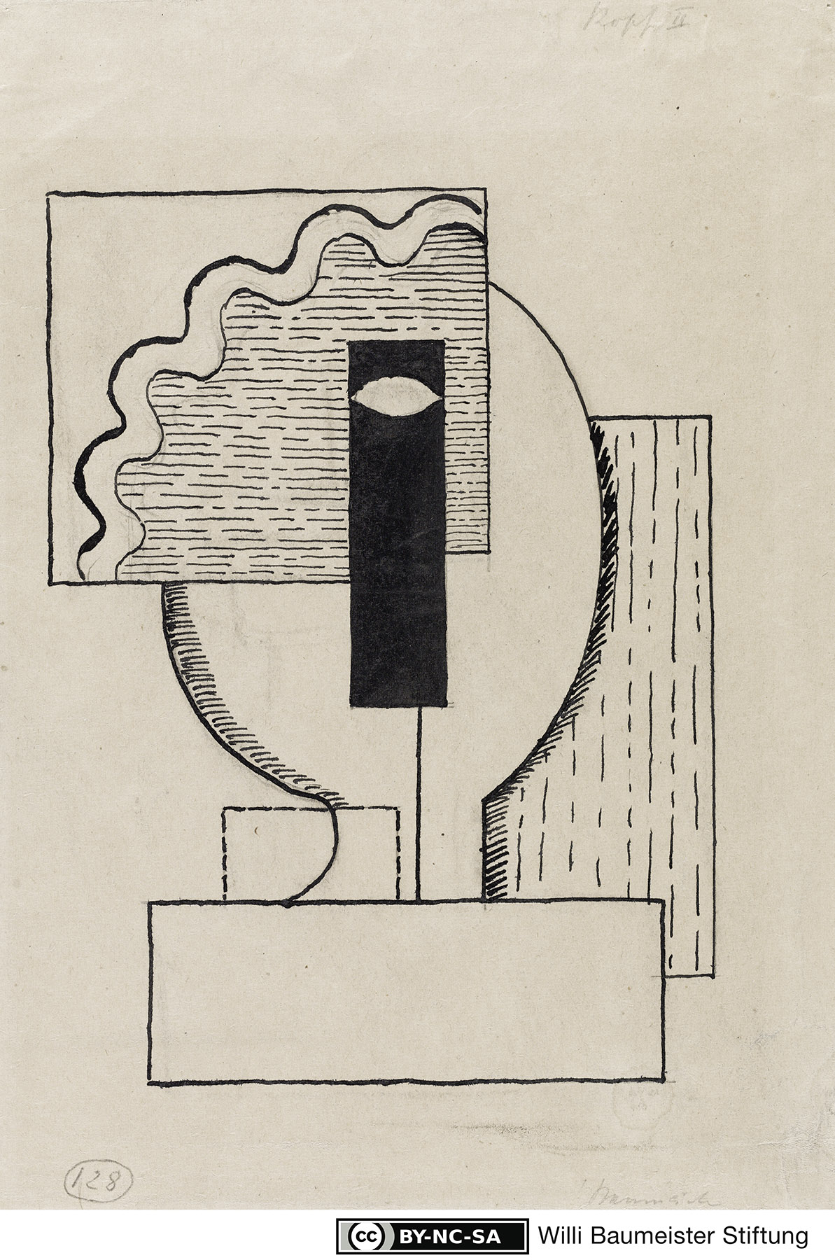 Bez. r. o. „Kopf II“. r. u. „Baumeister“ (auf Rasur einer älteren getilgten gleichartigen Signatur). im Kreis l. u. „128“