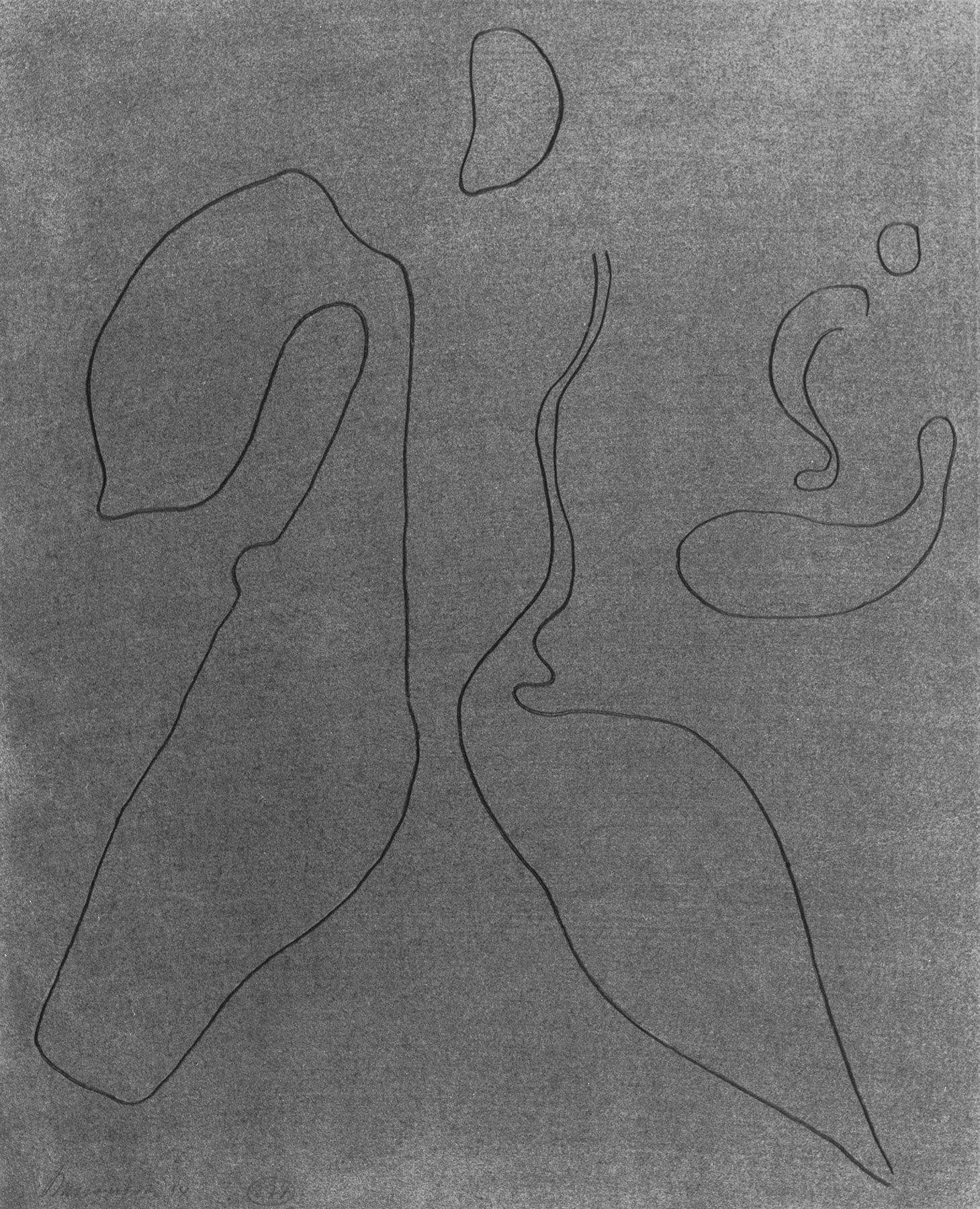 Starke Knickfalten radial von einem Punkt r. u. aus ausstrahlend bis zu den Blatträndern - retuschiert, die Ränder r., l., u. leicht unregelmäßig beschnitten.