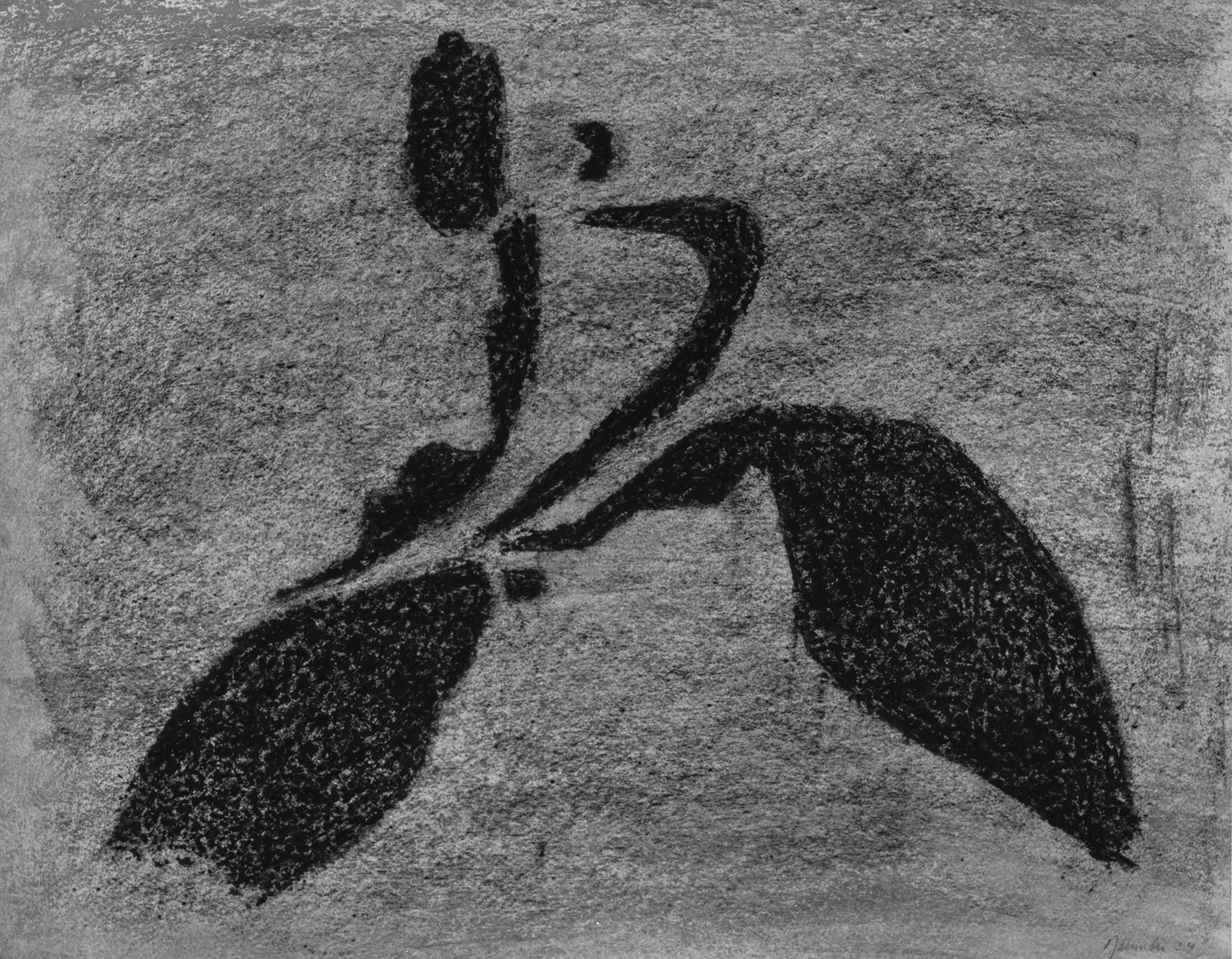 Vgl. die Gemälde G 365, 366, 367 von 1934 und die Serigraphie Sp 12. (fkb)   496-499: In den späten Blättern gewinnt die auf Bewegung, Körperumriß und Schatten reduzierte Form des Läufers eine spirituelle, magische Dimension: Wie ein unbekanntes, rätselhaftes Zeichen erscheint nun die Figur auf der Fläche. Eine geistige Ebene ist gewonnen, wie sie für die Kunst Baumeisters in der nächsten Zeit bestimmend werden sollte.