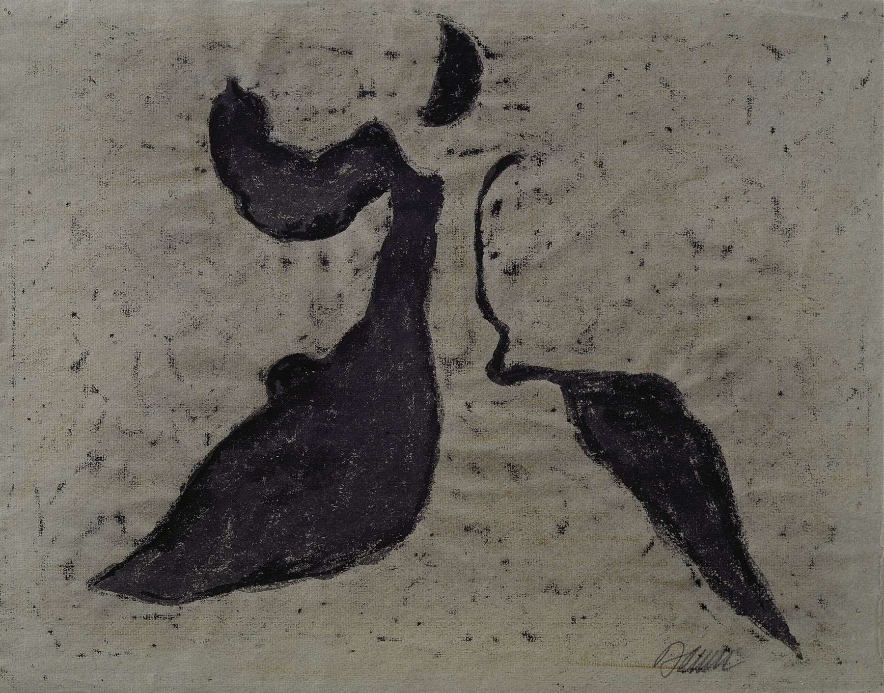 Kohle, gewischt, Ölkreide in Schwarz und Ocker, Deckfarbe in Schwarz und Grau, auf grauem Ingres-Bütten mit Wz. l. u.: PMF (ITALIA)